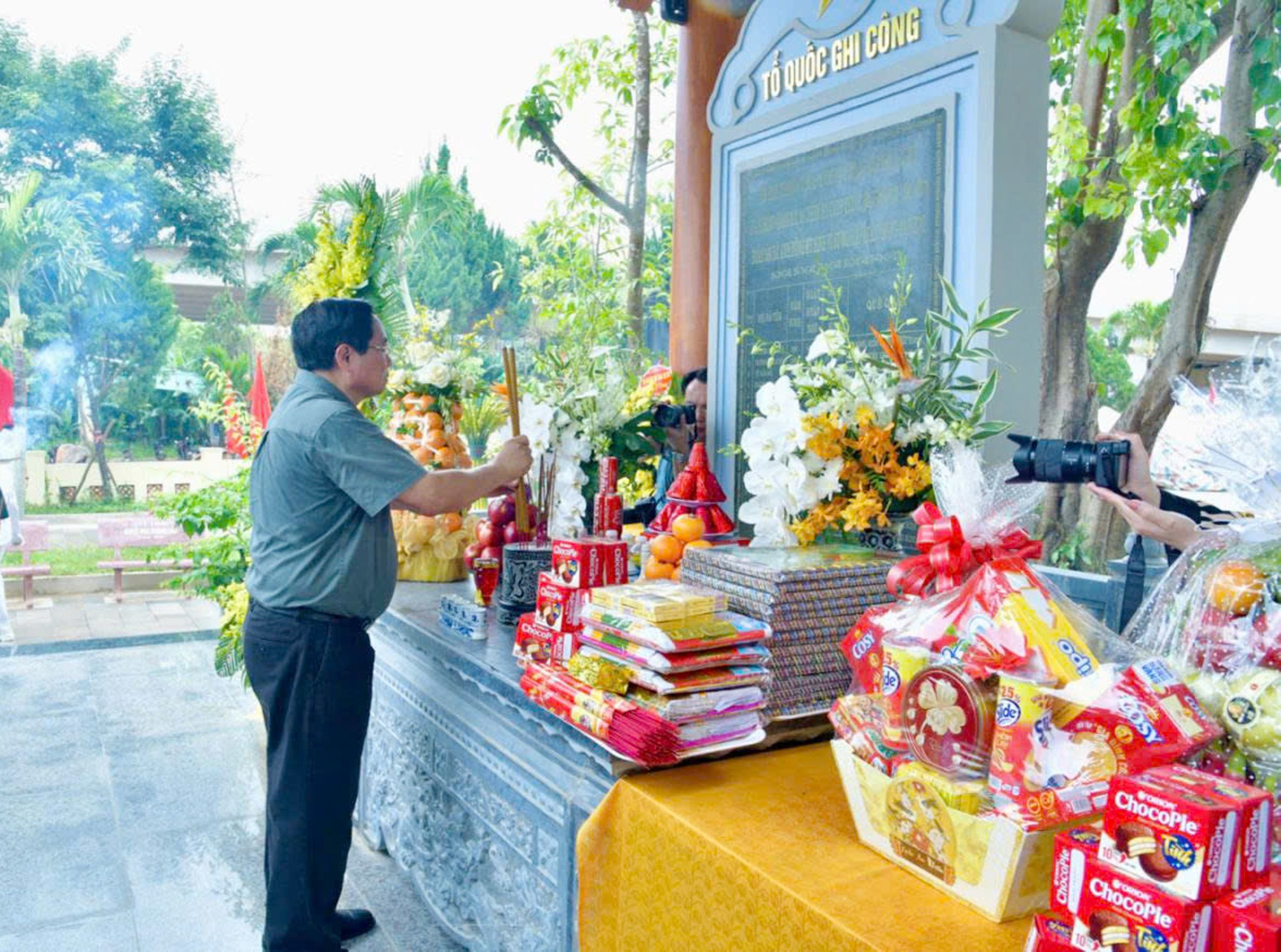 Thủ tướng Phạm Minh Chính dâng hương tại nhà bia tưởng niệm 16 liệt sĩ thanh niên xung phong.