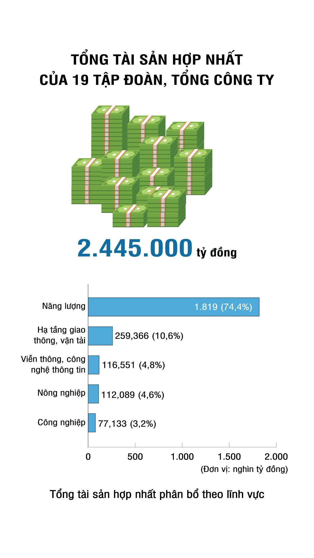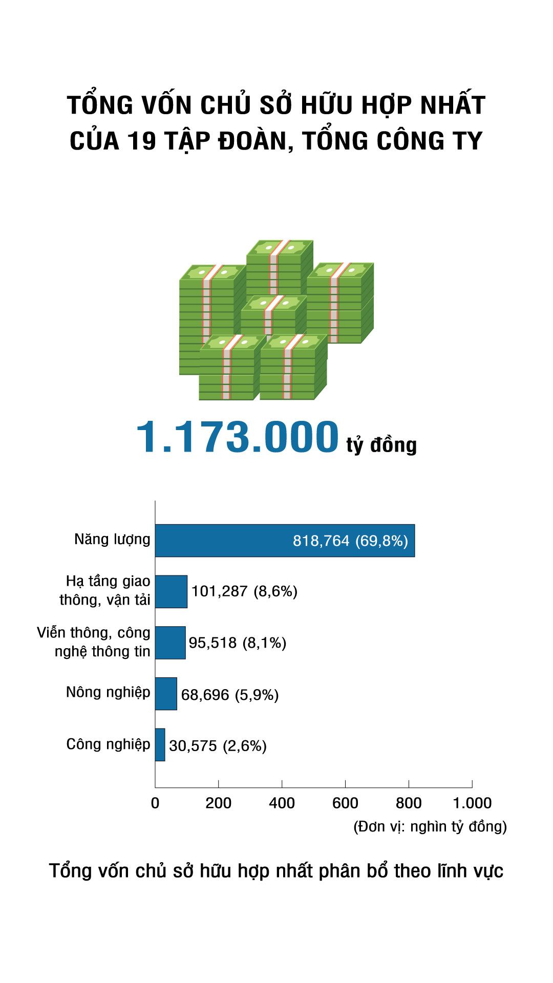Tổng vốn chủ sở hữu và tài sản hợp nhất của 19 tập đoàn, tổng công ty tính đến 1/1/2023