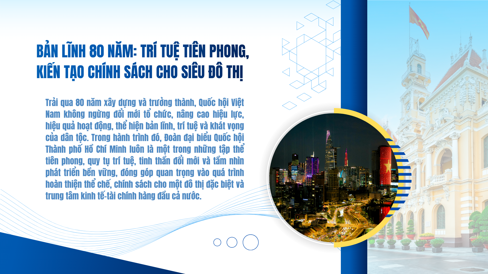 Tám thập kỷ qua, hành trình của Quốc hội Việt Nam cũng là hành trình trưởng thành của dân chủ và pháp quyền. Trong đó, dấu ấn tiên phong của Đoàn đại biểu Quốc hội Thành phố Hồ Chí Minh luôn đậm nét trong việc phản ánh nguyện vọng của cử tri, là chủ thể hoạch định chính sách và kiến tạo thể chế.