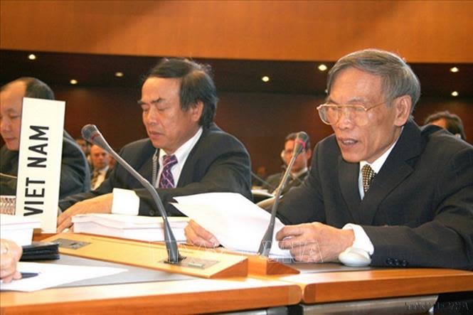 Bộ trưởng Thương mại Trương Đình Tuyển dẫn đầu Phái đoàn Việt Nam tham dự phiên họp thứ 14 - phiên cuối cùng của cuộc đàm phán đa phương về việc Việt Nam gia nhập Tổ chức Thương mại Thế giới (WTO), ngày 26/10/2006, tại Geneva (Thụy Sỹ). (Ảnh: TTXVN)