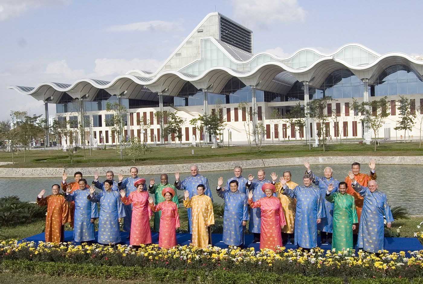 Các nhà lãnh đạo APEC trong trang phục áo dài truyền thống của Việt Nam tại Hội nghị Cấp cao APEC-14 (năm 2006 tại thủ đô Hà Nội). (Ảnh: APEC)