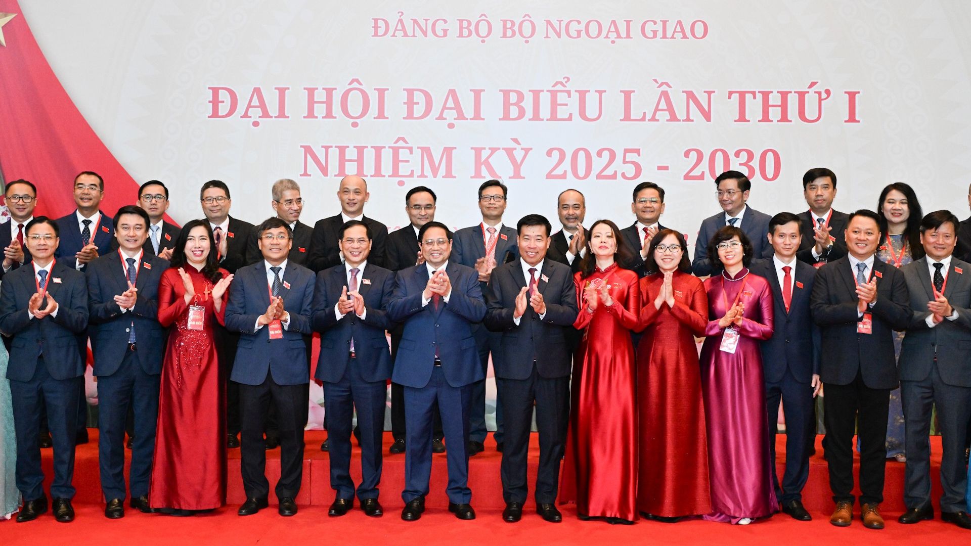 Thủ tướng Phạm Minh Chính với các đại biểu dự Đại hội đại biểu Đảng bộ Bộ Ngoại giao lần thứ I, nhiệm kỳ 2025-2030. (Ảnh: Nhandan.vn)