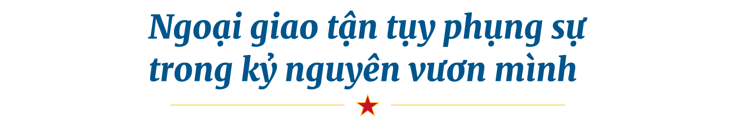 Với tinh thần phụng sự, ngoại giao Việt Nam đã luôn có mặt trên tuyến đầu trong mọi thời khắc đất nước cần đến, xứng đáng với niềm tin mà Đảng, Nhà nước và Nhân dân đã giao phó. Tiếp bước truyền thống vẻ vang của các thế hệ cha anh, ngoại giao Việt Nam sẽ tiếp tục phát huy vai trò tiên phong, thực hiện các nhiệm vụ trọng yếu, thường xuyên để duy trì môi trường hòa bình, ổn định, định vị đất nước vào vị trí tối ưu trong các xu hướng và trào lưu phát triển, thu hút các nguồn lực và điều kiện thuận lợi bên ngoài đóng góp đắc lực vào việc thực hiện hai mục tiêu chiến lược của đất nước.