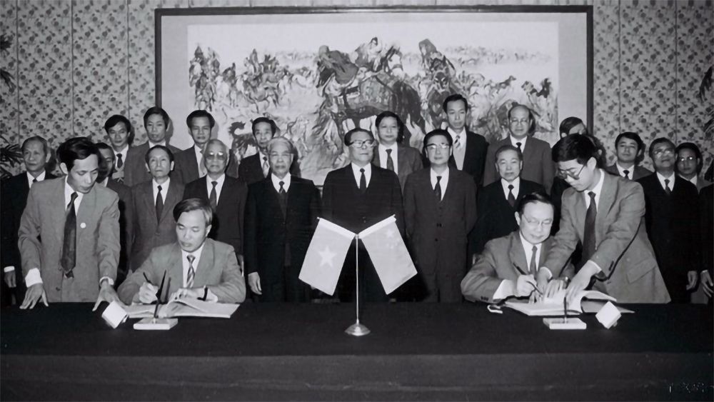 Từ ngày 5-10/11/1991, Đoàn đại biểu cấp cao Việt Nam do Tổng Bí thư Đỗ Mười và Chủ tịch Hội đồng Bộ trưởng Võ Văn Kiệt sang thăm Trung Quốc theo lời mời của Tổng Bí thư Giang Trạch Dân và đồng chí Lý Bằng, Thủ tướng Quốc vụ viện Trung Quốc, và chứng kiến Lễ ký hiệp định giữa hai nước. (Ảnh: TTXVN)