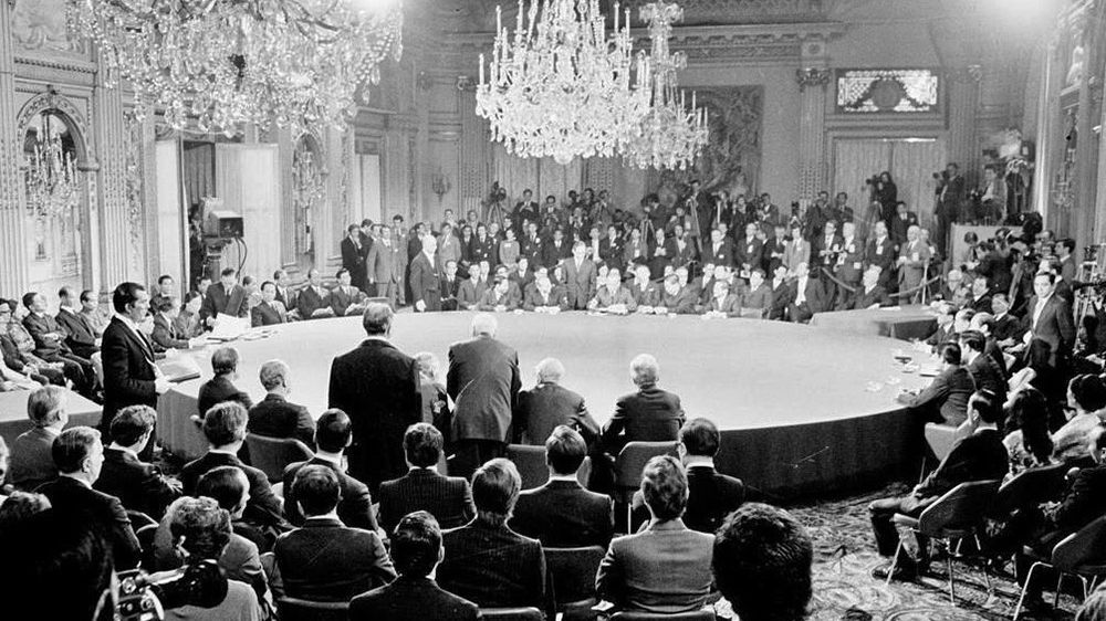 Quang cảnh lễ ký Hiệp định Paris, ngày 27/1/1973, tại Paris (Pháp).(Ảnh: TTXVN)
