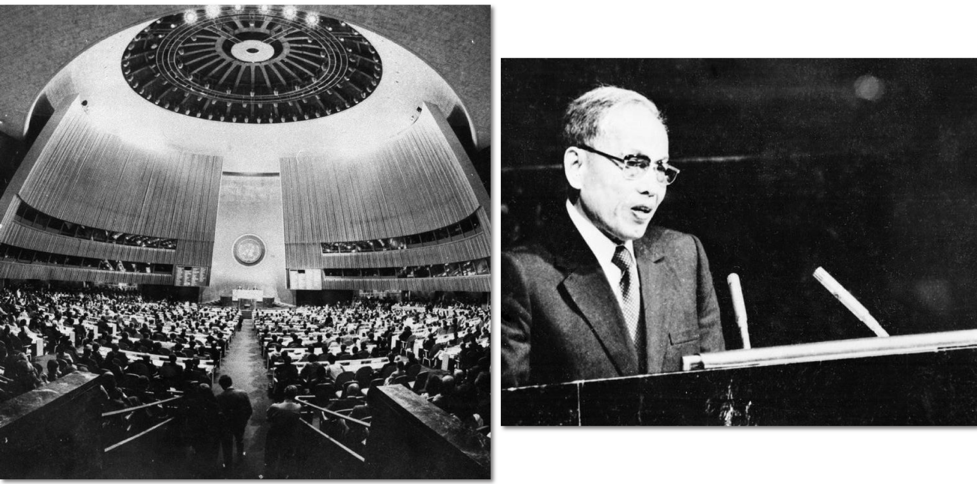 Bộ trưởng Ngoại giao Nguyễn Duy Trinh phát biểu tại Kỳ họp thứ 32 Đại hội đồng Liên hợp quốc tại New York (Mỹ), ngày 20/9/1977. Kỳ họp đã thông qua Nghị quyết công nhận Việt Nam là thành viên của Liên hợp quốc. (Ảnh: TTXVN)