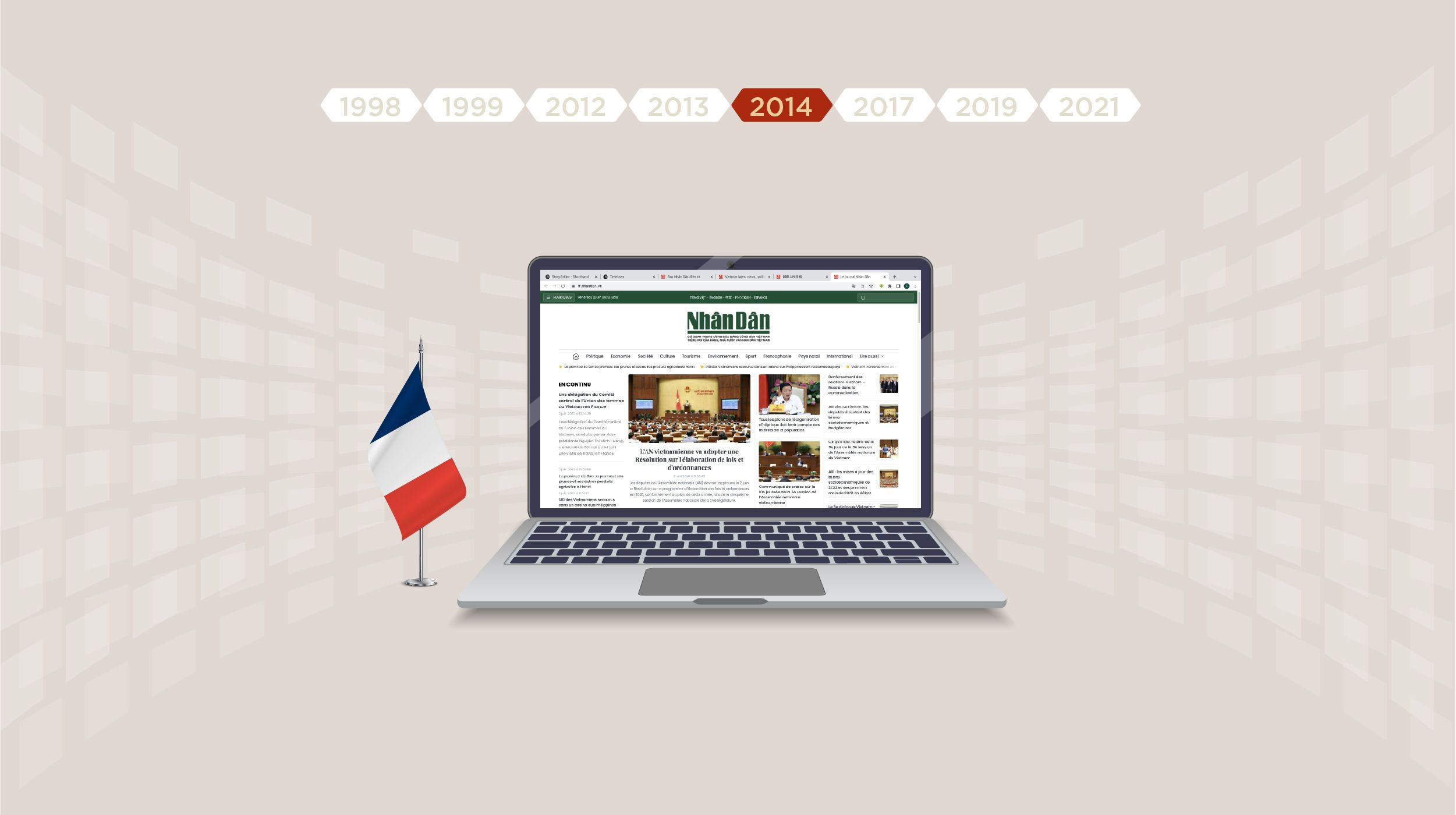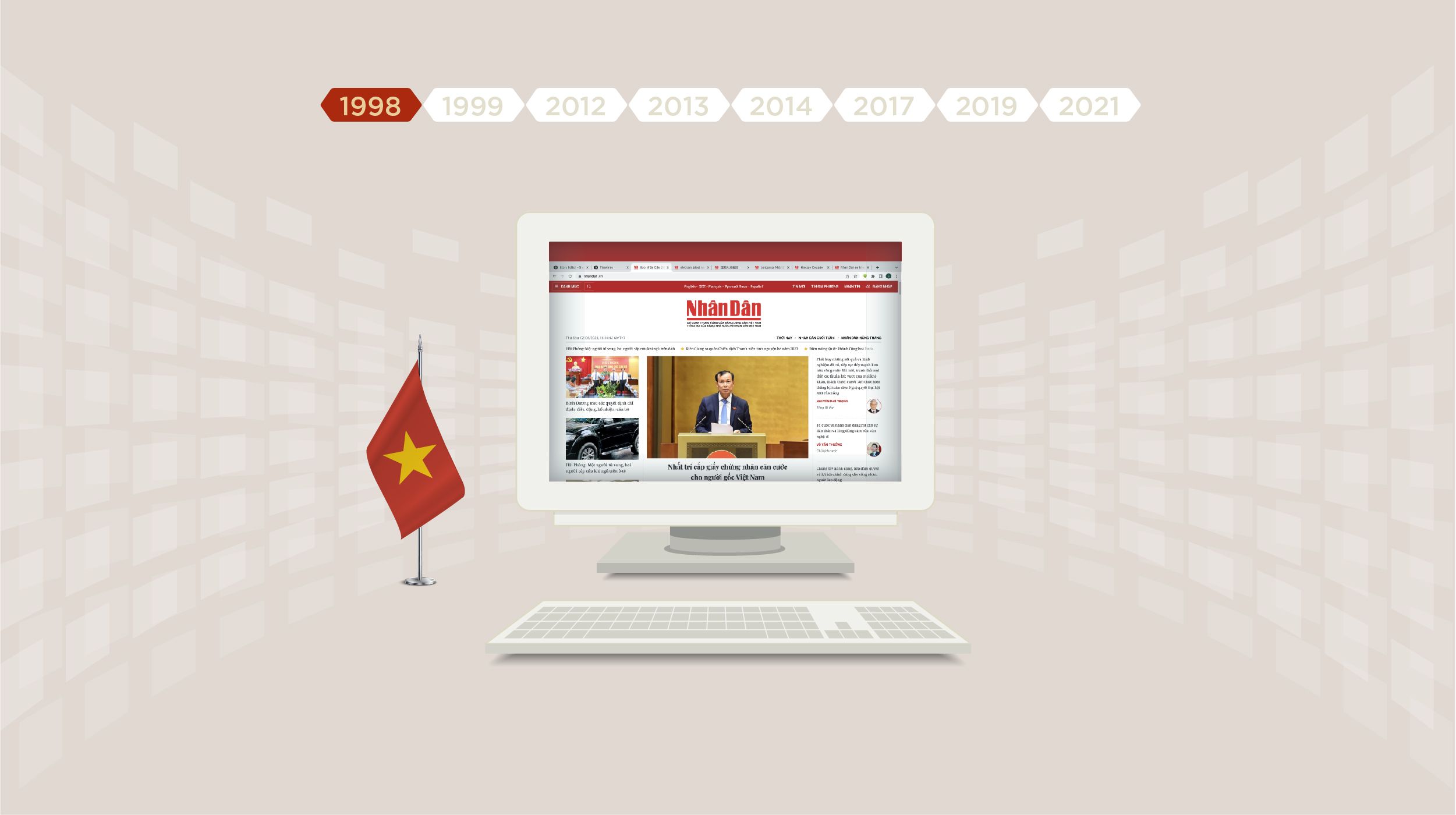 By Thi Uyên - Tạ Lư Năm 1998: Xuất bản Báo Nhân Dân điện tử tiếng Việt Năm 1999: Xuất bản Báo Nhân Dân điện tử tiếng Anh Năm 2012: Xuất bản Báo Nhân Dân điện tử tiếng Trung Năm 2013: Thành lập Phòng Kỹ thuật Năm 2014: Xuất bản Báo Nhân Dân điện tử tiếng Pháp Năm 2017: Xuất bản Báo Nhân Dân điện tử tiếng Nga Năm 2019: Xuất bản Báo Nhân Dân điện tử tiếng Tây Ban Nha Năm 2021: Thành lập Phòng Phóng viên Tiếng Việt Thành lập Phòng Biên tập Tiếng Việt TopBuilt with Shorthand