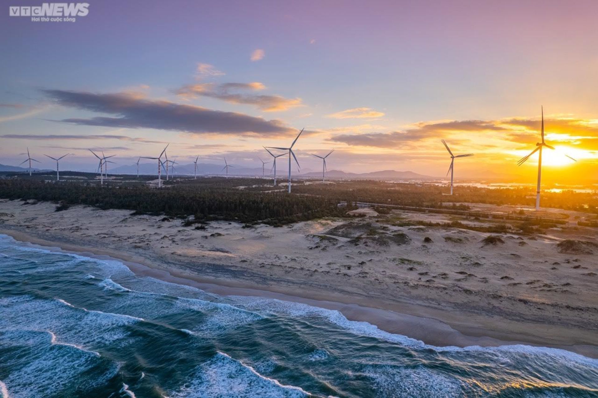 Sur la célèbre route touristique reliant le centre-ville de Quy Nhon à la mer Trung Luong, on trouve non seulement une belle longue plage verte avec des forêts de casuarina chuchotantes des deux côtés de la route, mais également un lieu de vie extrêmement « virtuelle » avec le champ éolien de Phuong Mai dans la commune de Cat Tiên, ville de Quy Nhon.
