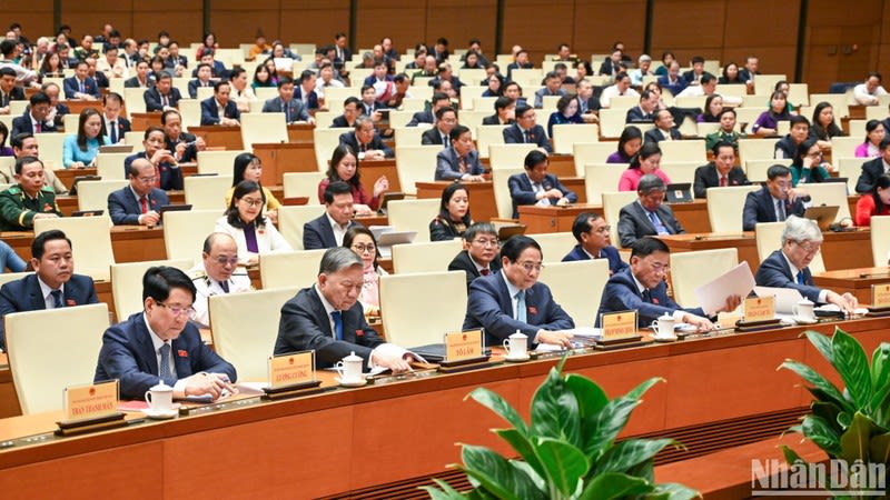 Chiều 30/11/2024, với 443.454 đại biểu có mặt tán thành, Quốc hội đã thông qua nghị quyết chủ trương đầu tư dự án đường sắt tốc độ cao trên trục bắc-nam. Ảnh: DUY LINH