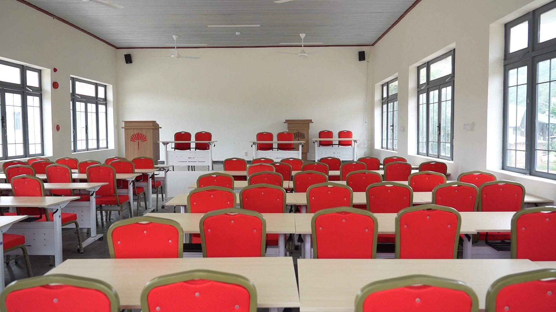 Bên trong, khoảng gần 100 chỗ ngồi được bố trí, có bục phát biểu, bàn chủ toạ. Các ghế ngồi với tông màu đỏ au, trang trọng, được xếp theo hàng lối rõ ràng và vuông vức. Trần nhà được trang bị quạt và phía cuối có cả các thiết bị phòng chống cháy nổ.