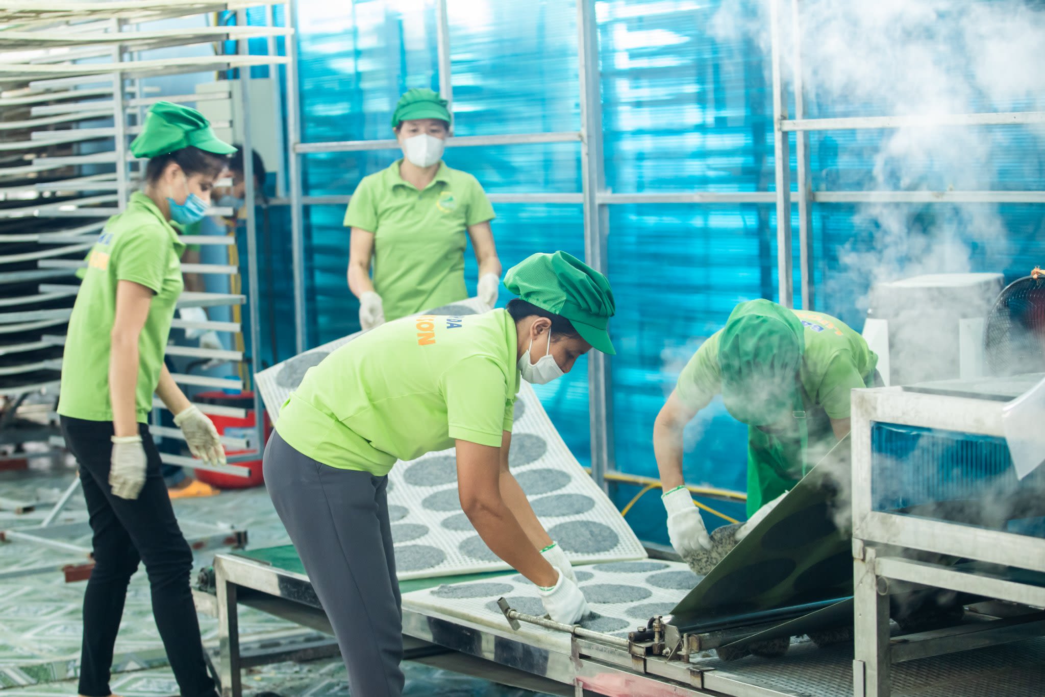 Kế thừa những bí quyết làm nghề từ quê nhà, thay vì làm thủ công, các công đoạn từ làm bột, tráng bánh, phơi bánh đều được Công ty TNHH Sản xuất và kinh doanh thực phẩm Lương Sơn tự động hóa bằng dây chuyền, máy móc với sản lượng lên đến 40 triệu bánh/năm, tạo việc làm cho 50 lao động địa phương.