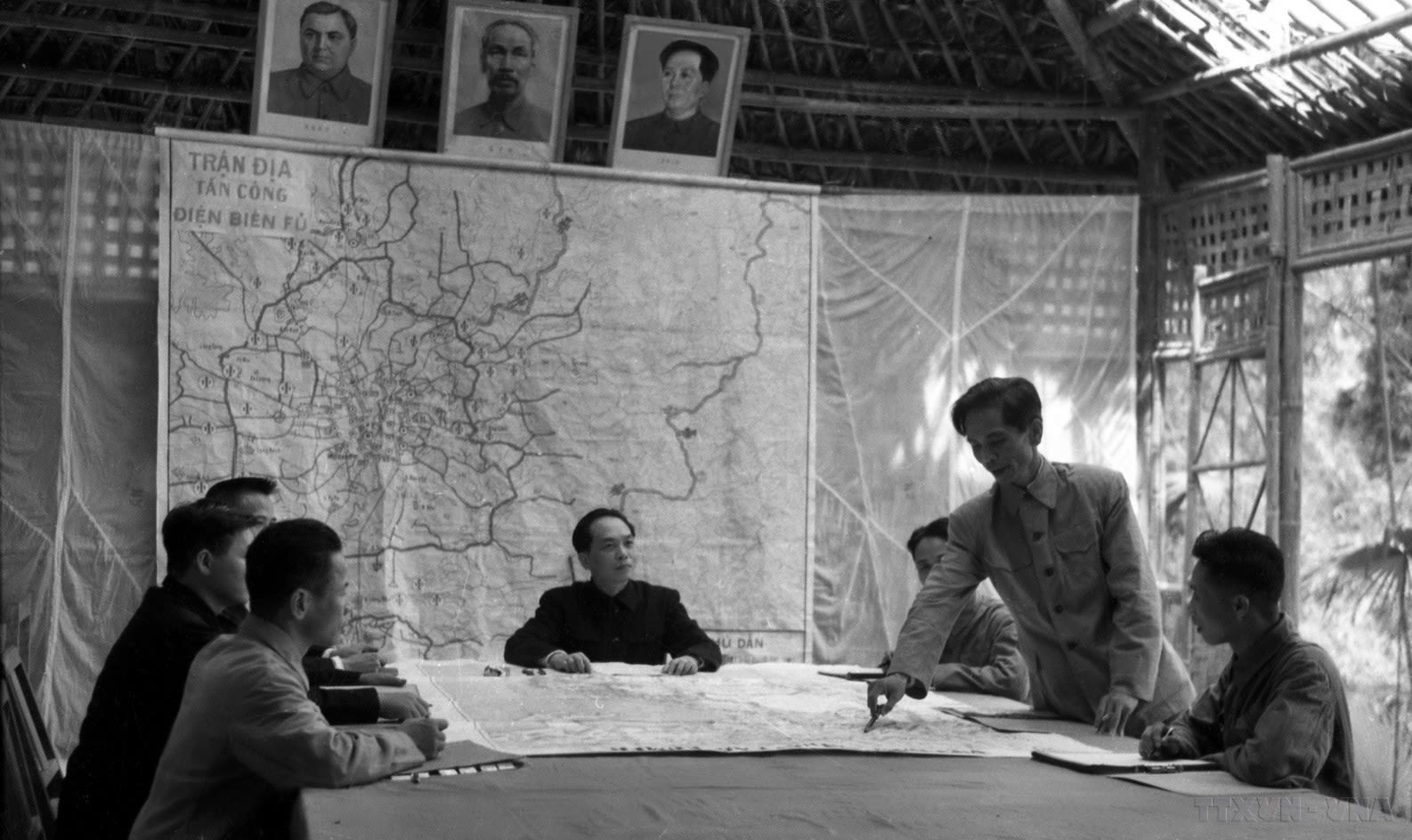 Bộ chỉ huy chiến dịch dưới sự chỉ đạo trực tiếp của Đại tướng Võ Nguyên Giáp đang bàn kế hoạch tác chiến cho từng trận đánh.