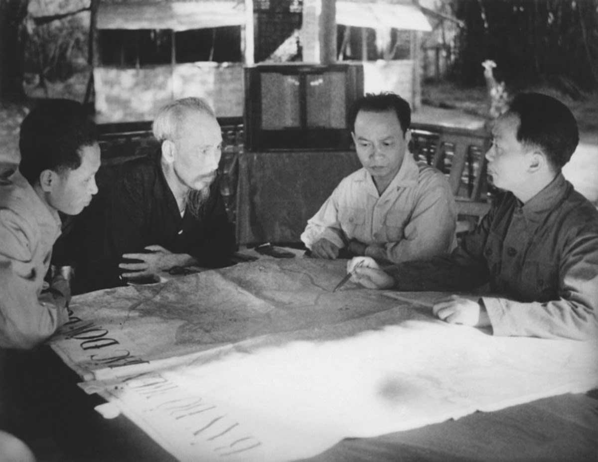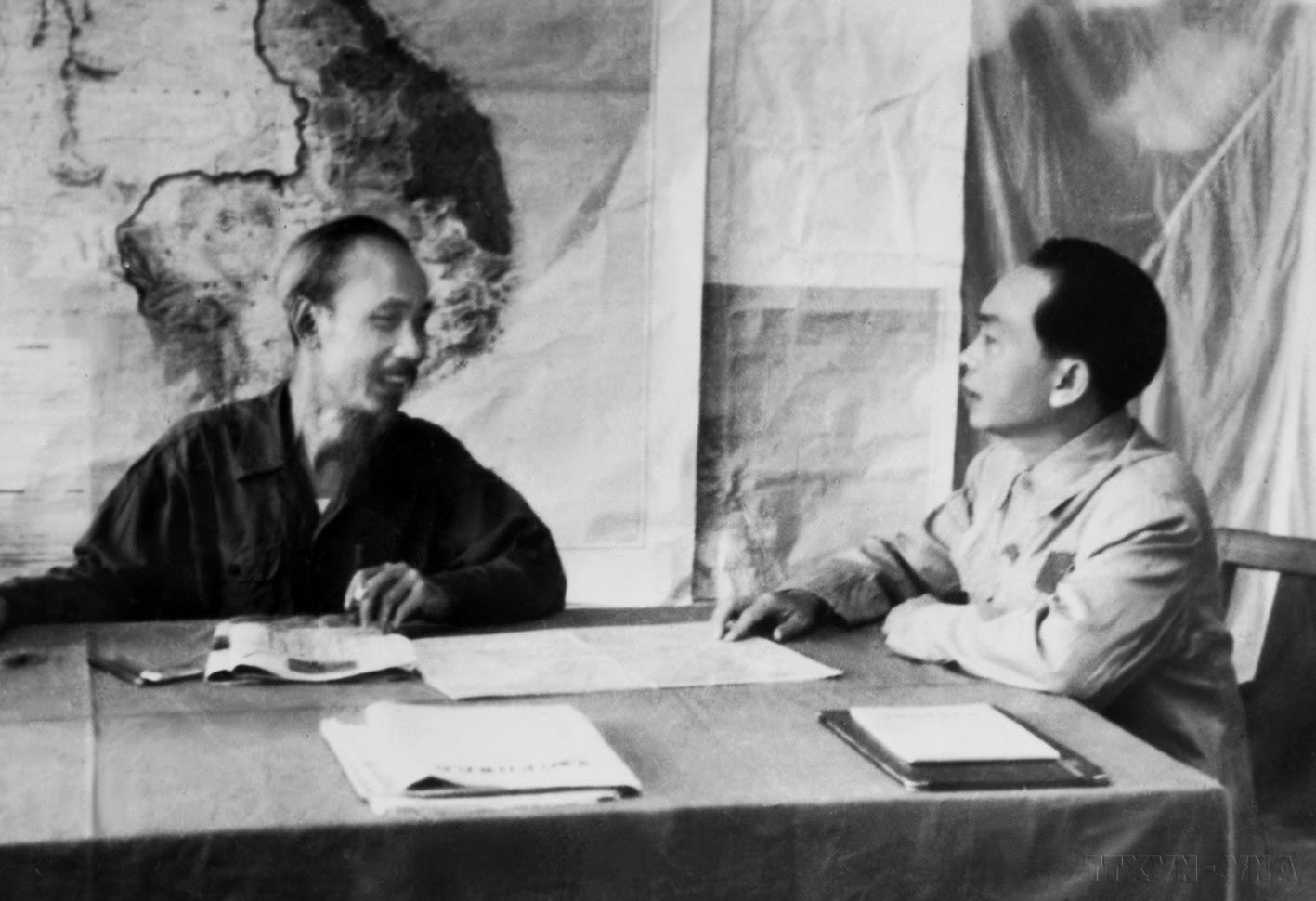 Thay mặt Trung ương Đảng và Chính phủ, Hồ Chủ tịch trực tiếp giao nhiệm vụ cho Đại tướng Võ Nguyên Giáp nghiên cứu kế hoạch tác chiến và mở chiến dịch Điện Biên Phủ. Ảnh tư liệu: TTXVN