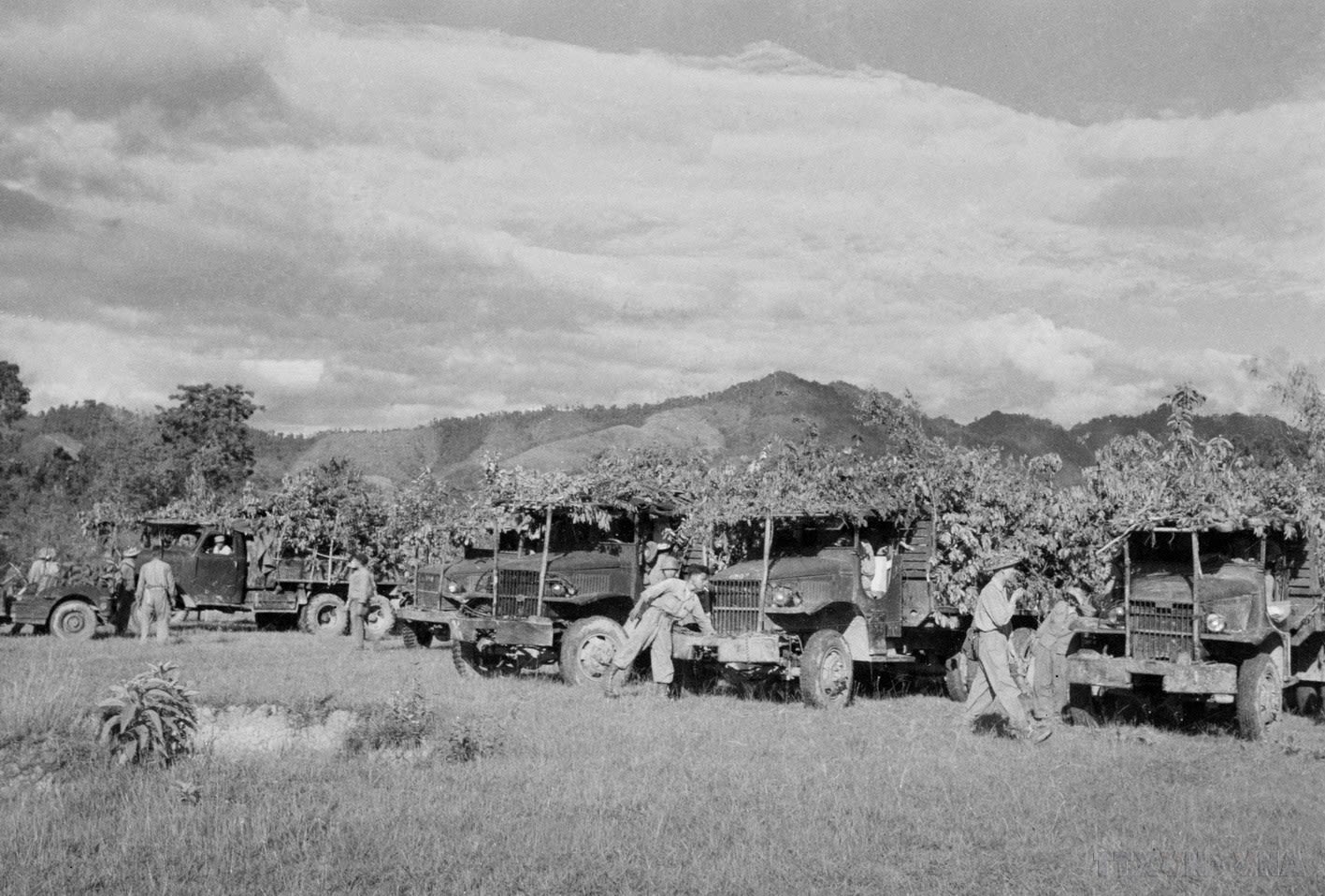 Các đơn vị bộ binh cơ giới đang chuẩn bị xuất phát đưa quân vào Điện Biên Phủ