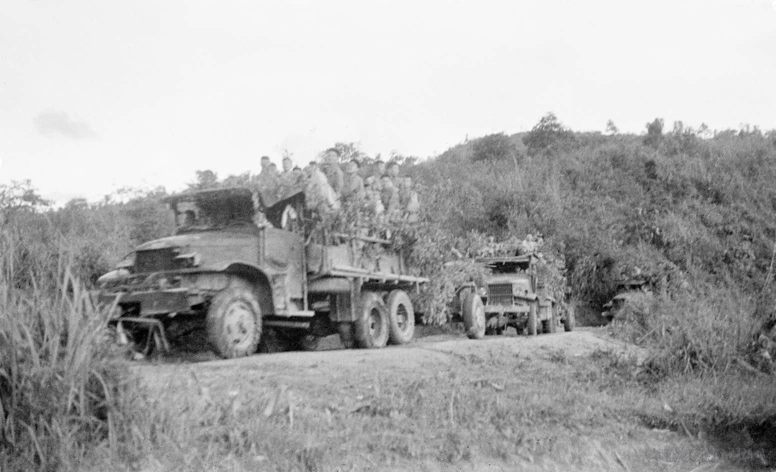 Các đơn vị bộ binh cơ giới đang khẩn trương đưa bộ đội vào Điện Biên Phủ.