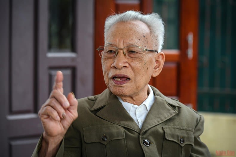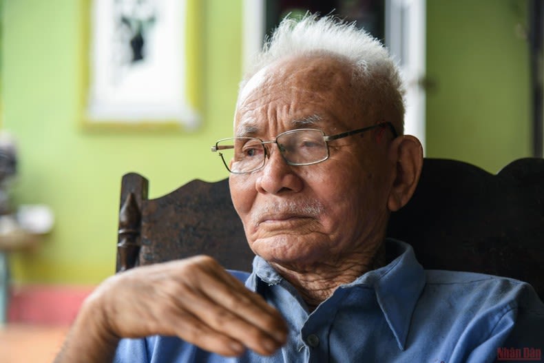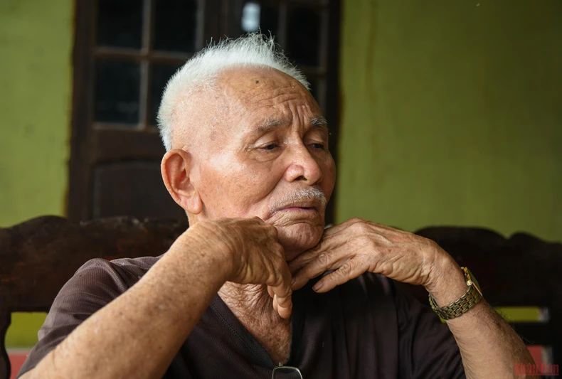 Ông Lê Viết Trinh (thôn Bách Lộc, xã Trung Hải) năm nay 91 tuổi nhưng vẫn rất minh mẫn, đặc biệt khi nhắc lại chuyện xưa. (Ảnh: THÀNH ĐẠT)