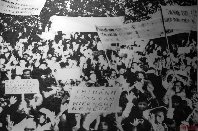 Nhân dân vùng Nam vĩ tuyến 17 đấu tranh đòi chính quyền Sài Gòn thi hành Hiệp định Geneve. (Ảnh: Tư liệu Bảo tàng đôi bờ Hiền Lương-Bến Hải)