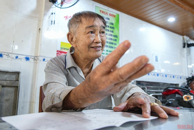 Ông Nguyễn Quang Liệu kể lại ký ức về những ngày ở bên kia dòng Bến Hải. (Ảnh: THÀNH ĐẠT)