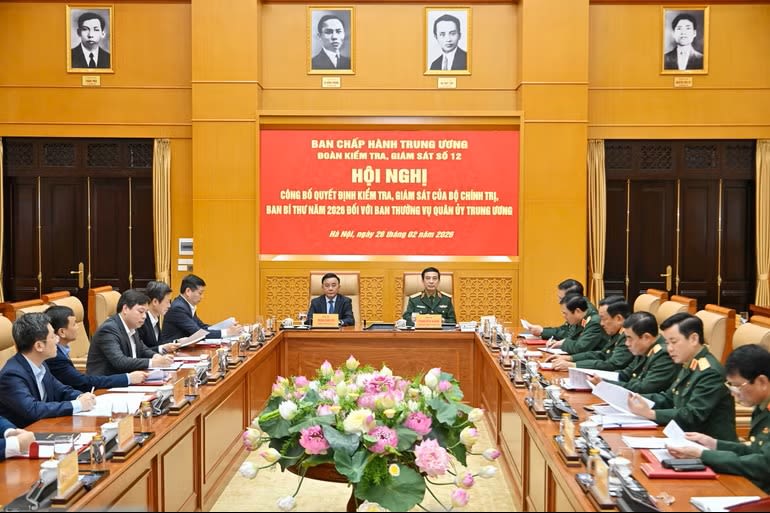 Đoàn Kiểm tra, giám sát của Bộ Chính trị, Ban Bí thư năm 2026, do đồng chí Trần Cẩm Tú, Ủy viên Bộ Chính trị, Thường trực Ban Bí thư làm Trưởng đoàn tổ chức hội nghị triển khai Quyết định kiểm tra, giám sát của Bộ Chính trị, Ban Bí thư đối với Ban Thường vụ Quân ủy Trung ương.