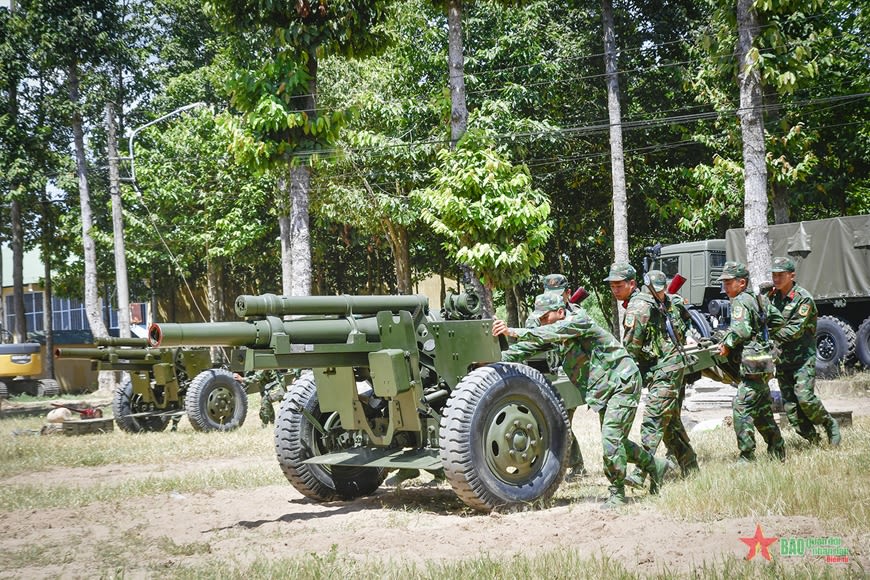 Khẩu đội pháo 105mm chiếm lĩnh trận địa bắn. Ảnh: qdnd