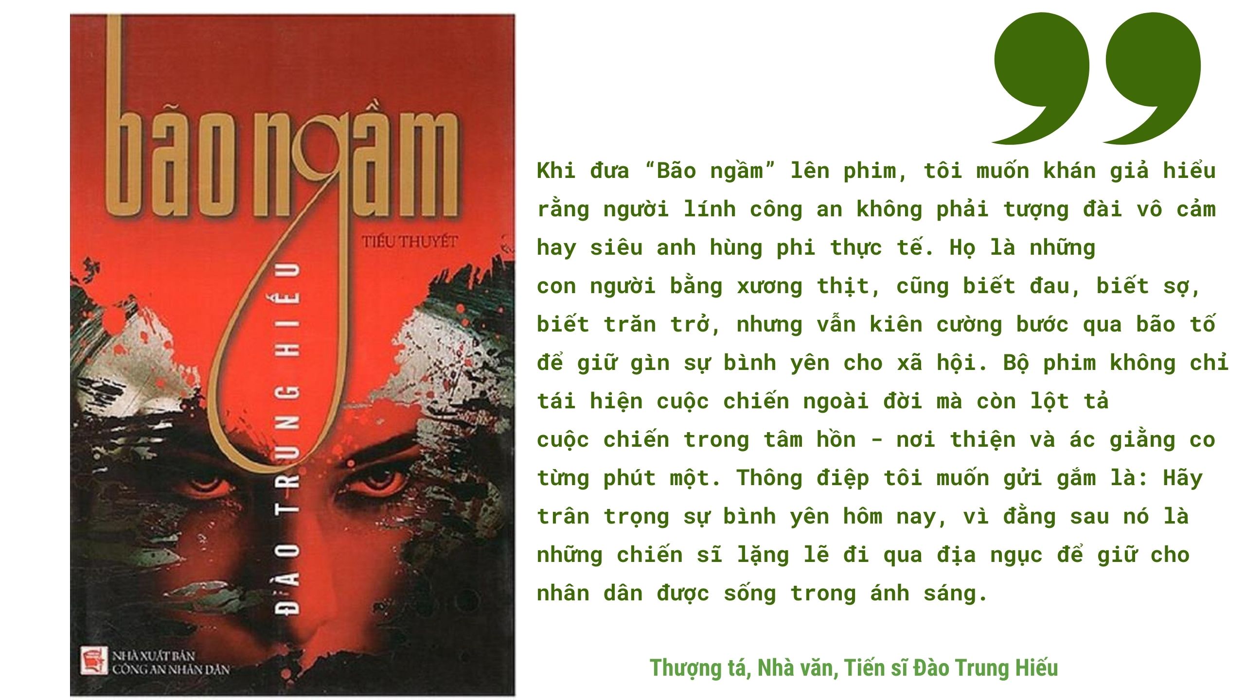 “Bão ngầm” không chỉ là câu chuyện phá án, mà còn là bức tranh toàn cảnh về cuộc chiến chống ma túy – một cuộc chiến đầy hiểm nguy, cám dỗ và những khoảng tối trong tâm hồn người lính. Tôi đã thấy đồng đội phải sống giữa hai lằn ranh: một bên là nhiệm vụ, lý tưởng bảo vệ nhân dân; một bên là sự cô đơn, sự hiểu lầm, thậm chí nguy cơ tha hóa trước đồng tiền và quyền lực của tội phạm. Trong bóng tối ấy, họ phải giữ mình, giữ niềm tin vào lẽ phải, đôi khi với cái giá rất đắt là mạng sống và hạnh phúc riêng tư.