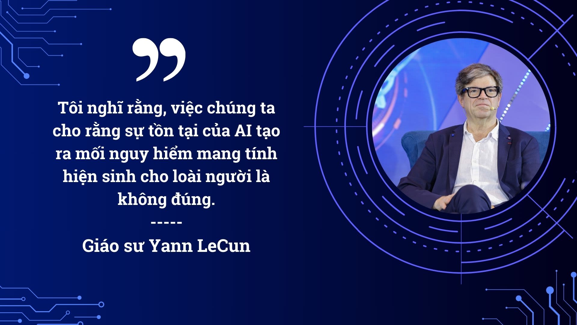 Giáo sư Yann LeCun, Phó Chủ tịch và Giám đốc Khoa học Trí tuệ nhân tạo tại Meta (Hoa Kỳ), đồng thời là Giáo sư Silver tại Đại học New York (NYU) (Hoa Kỳ), trực thuộc Viện Courant, Trung tâm Khoa học Dữ liệu, Trung tâm Khoa học Thần kinh, và Khoa Kỹ thuật Điện tử - Máy tính. Ông là Giám đốc sáng lập của Facebook AI Research và Trung tâm Khoa học Dữ liệu của NYU.