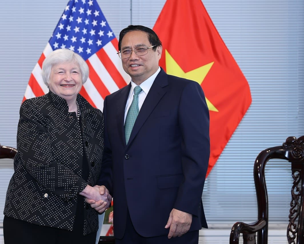 Receiving US Treasury Secretary Janet Yellen, US Secretary of Commerce Gina Raimondo, US trade representatives, and Ambassador Katherine Tai, Prime Minister Pham Minh Chinh affirmed that Vietnam considers the US a leading important partner, and stands ready to work together with the country to promote the bilateral relationship intensively, extensively, stably, and practically.