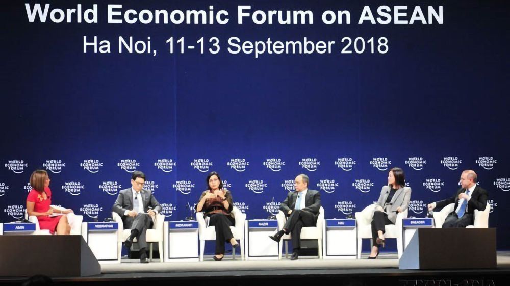 2018年9月12日,在2018年世界经济论坛东盟峰会(WEF ASEAN 2018)框架,以“亚洲经济展望”为主题的讨论会在河内国家会议中心举行。(图片来源:越通社)