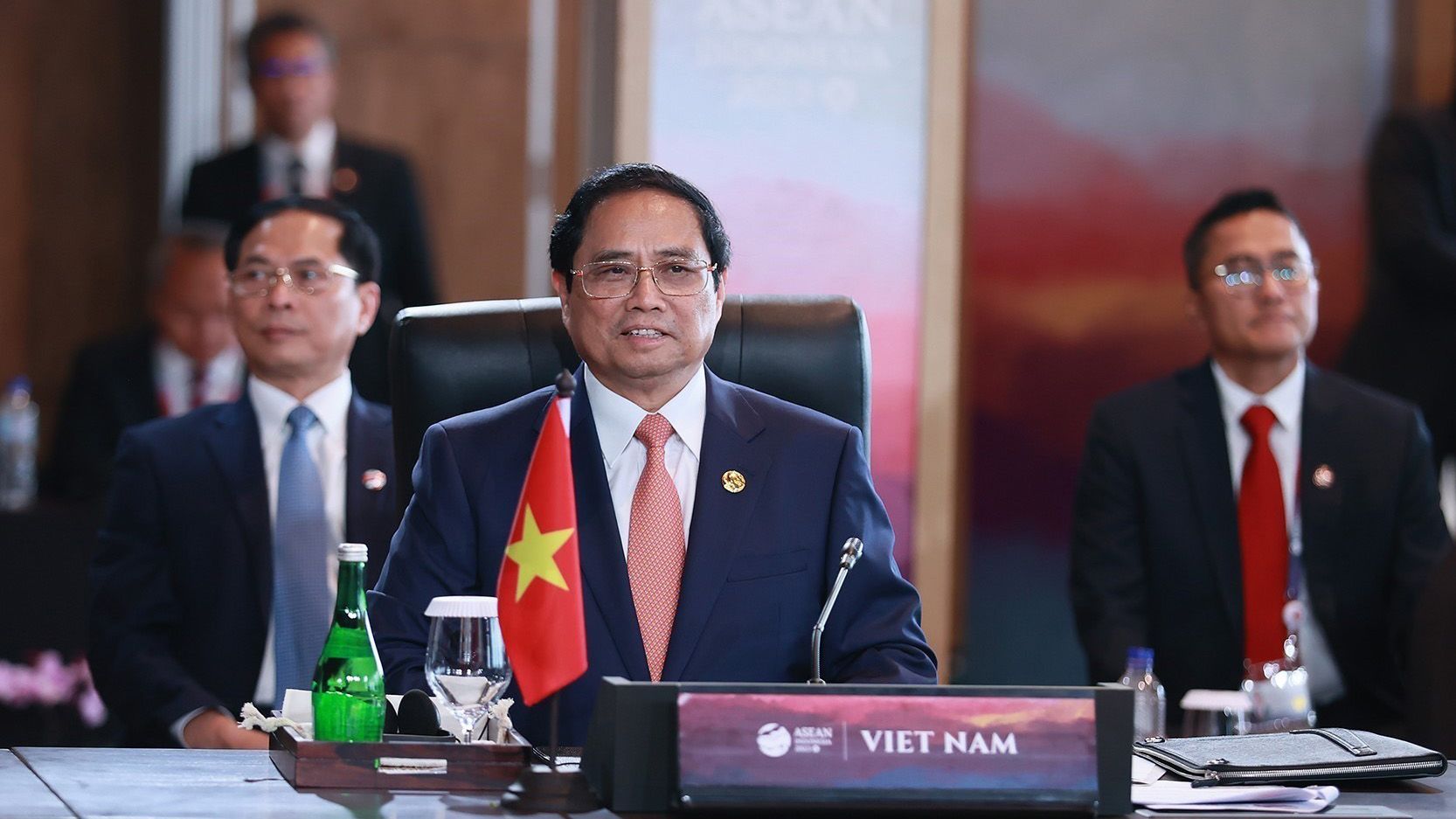 越南政府总理范明正出席于2023年5月10日在印度尼西亚举行的东盟国家领导人与东盟商务咨询理事会对话会。(图片来源:越通社)