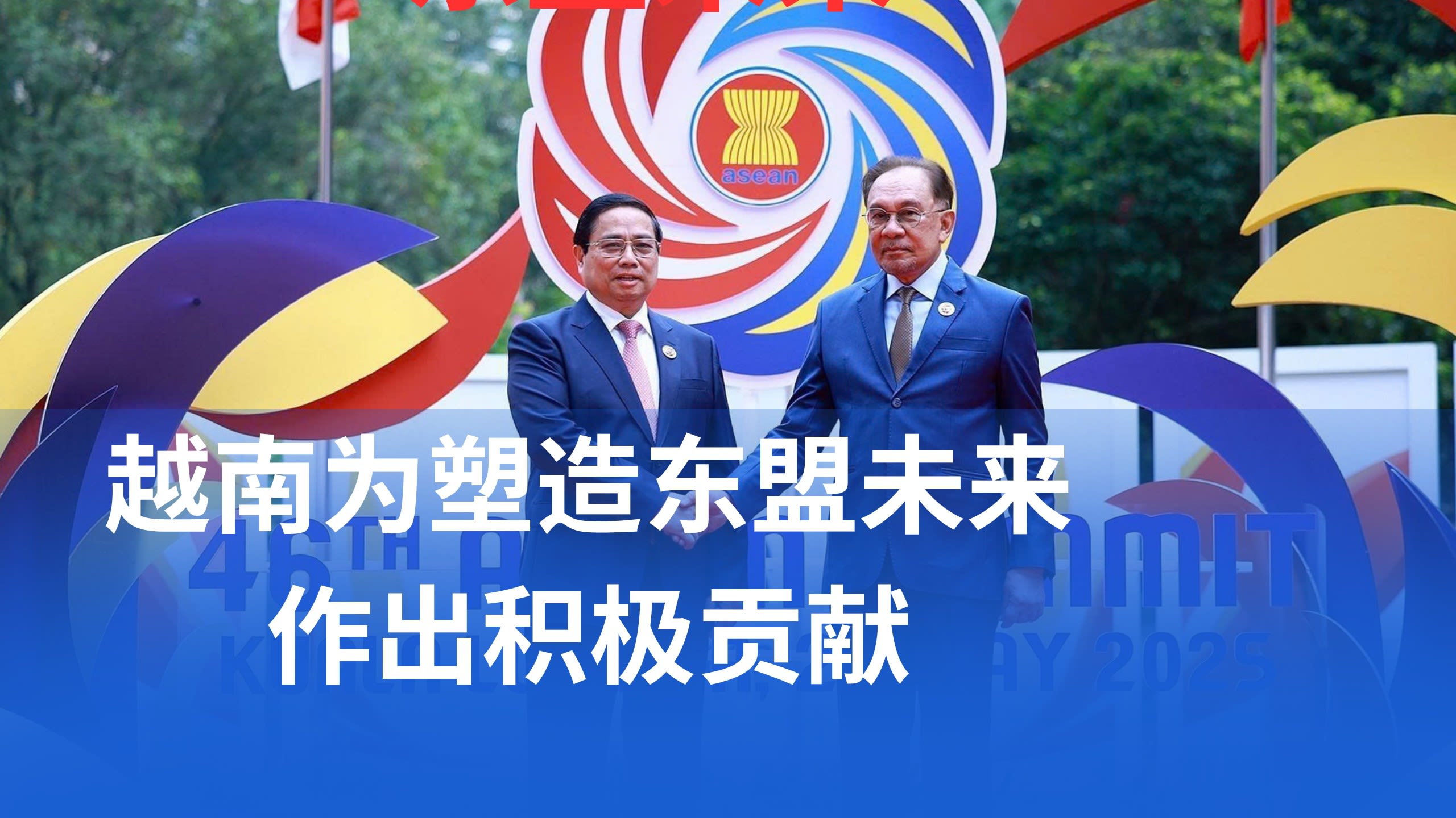 应2025年东盟轮值主席国领导、马来西亚总理安瓦尔·易卜拉欣(Anwar Ibrahim)的邀请,越南社会主义共和国总理范明正率领越南高级代表团出席于2025年10月25日至28日在马来西亚吉隆坡举行的第47届东盟峰会及相关会议。