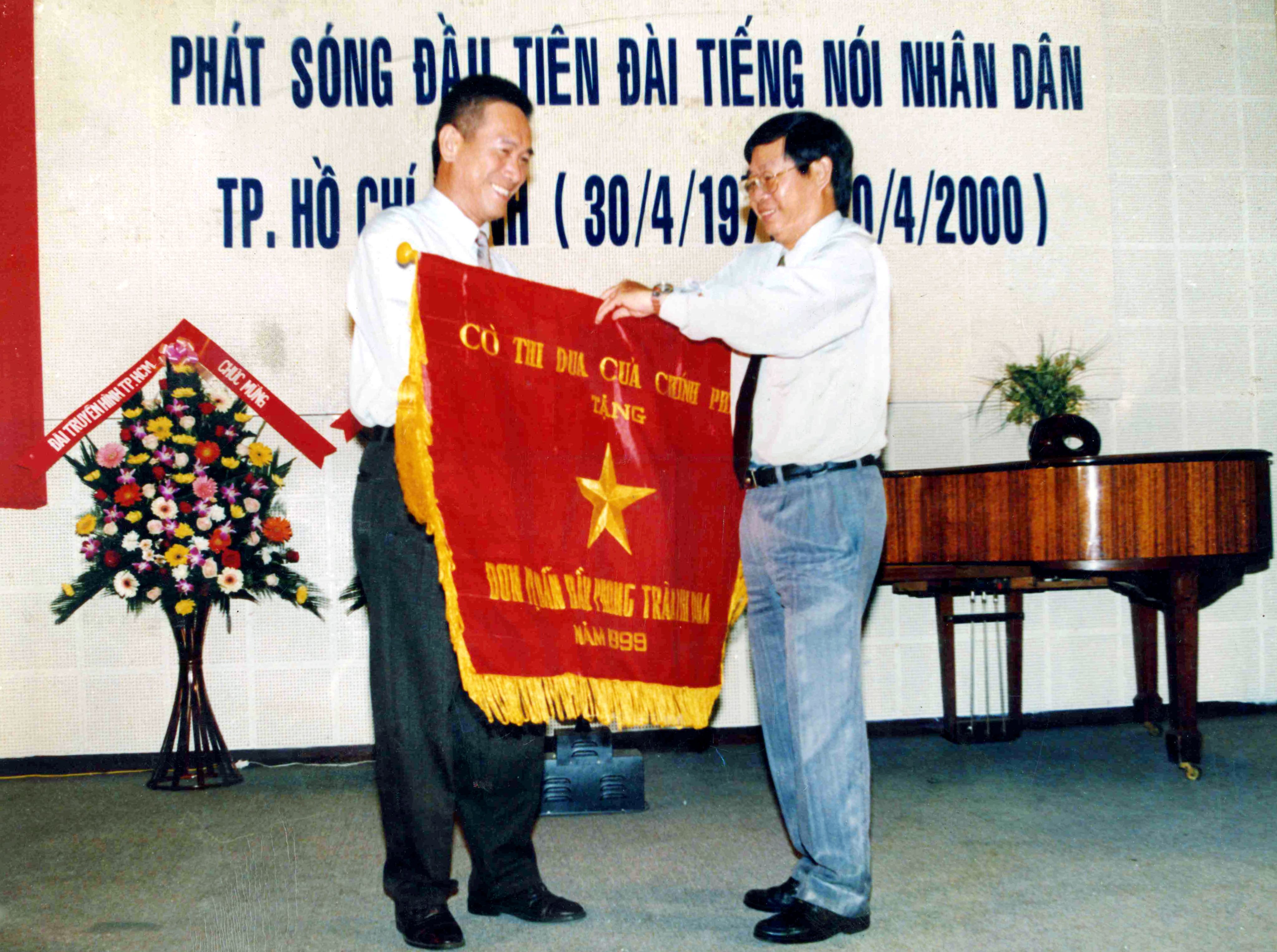 Lãnh đạo Đài Tiếng nói nhân dân Thành phố Hồ Chí Minh nhận cờ thi đua của Thủ tướng Chính phủ .