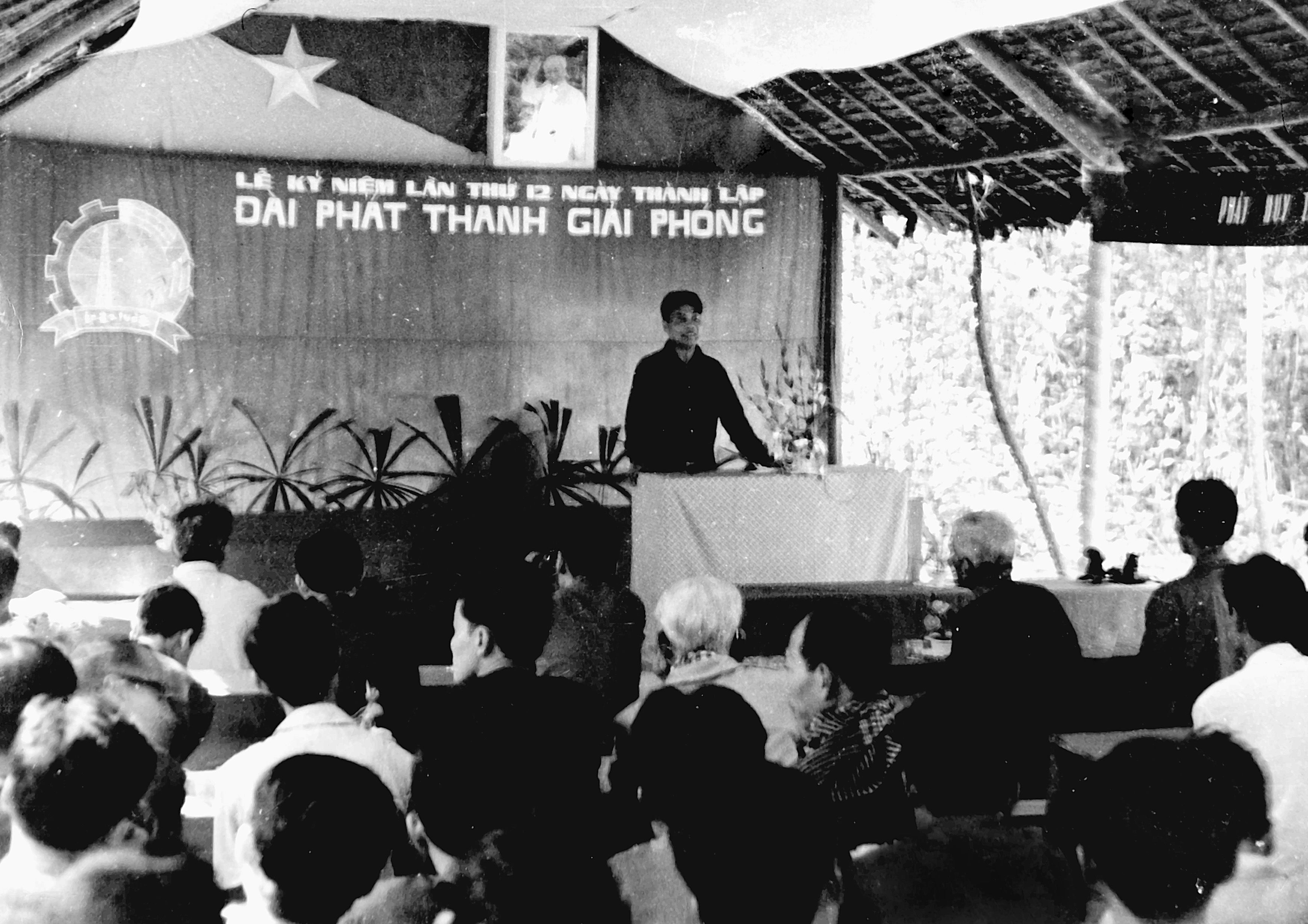 Đồng chí Hai Xuyên – Phó Giám đốc Đài phát thanh Giải phóng phát biểu tại Lễ kỷ niệm 12 năm Ngày thành lập Đài phát thanh Giải phóng ở chiến khu Tây Ninh, năm 1974.