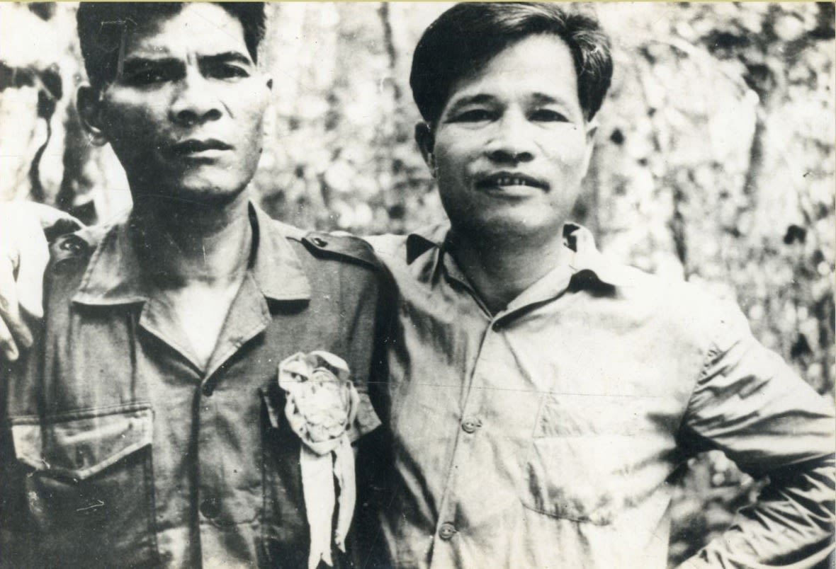 Đại tướng Nguyễn Chí Thanh, Ủy viên Bộ Chính trị, Bí thư Trung ương Cục miền Nam, Chính ủy quân giải phóng miền Nam cùng đại biểu anh hùng Pi Năng Tắc tại Đại hội anh hùng chiến sĩ thi đua Quân giải phóng miền Nam, lần thứ nhất, năm 1965. Ảnh tư liệu