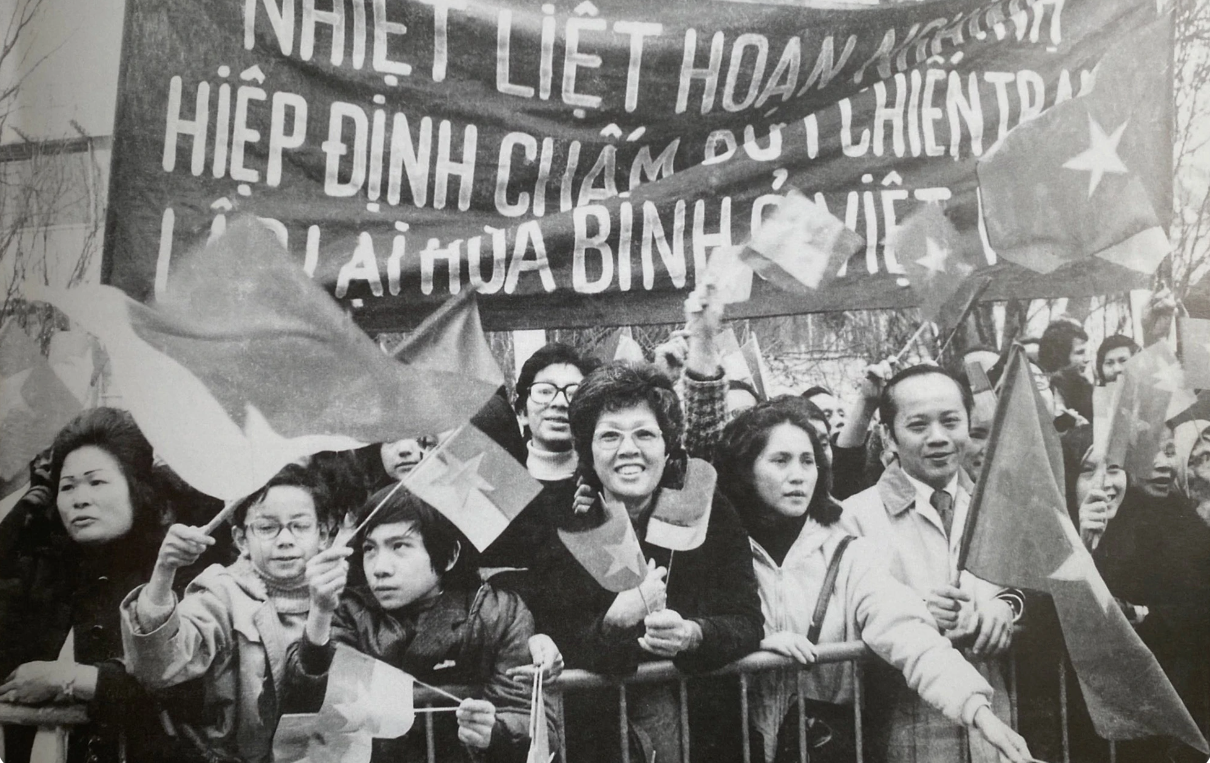 Les Viêt kiêu de Paris (les Vietnamiens résidant à Paris) se félicitent des Accords sur la cessation de la guerre et le rétablissement de la paix au Vietnam, signés en 1973.