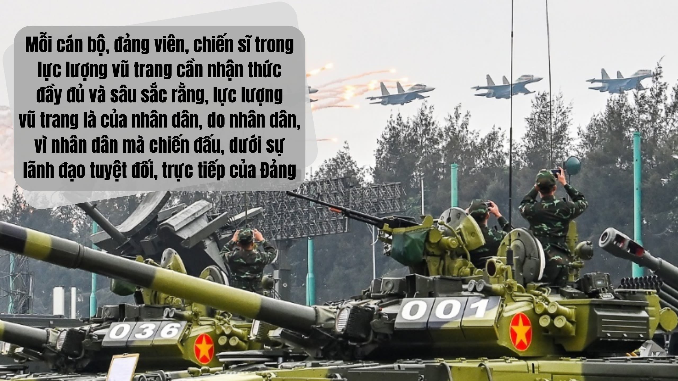 Mục tiêu của các thế lực thù địch là nhằm tách rời lực lượng vũ trang khỏi sự lãnh đạo của Đảng; làm cho lực lượng vũ trang không còn là công cụ bạo lực sắc bén, không còn là lực lượng chính trị tin cậy của Đảng và Nhà nước. Bởi vậy, nguyên tắc Đảng lãnh đạo tuyệt đối, trực tiếp về mọi mặt đối với lực lượng vũ trang phải được giữ vững và luôn luôn được củng cố, tăng cường trong nhận thức và hành động của mỗi cán bộ, chiến sĩ. Mỗi cán bộ, đảng viên, chiến sĩ trong lực lượng vũ trang cần nhận thức đầy đủ và sâu sắc rằng, lực lượng vũ trang là của nhân dân, do nhân dân, vì nhân dân mà chiến đấu, dưới sự lãnh đạo tuyệt đối, trực tiếp của Đảng. Mục tiêu, lý tưởng chiến đấu của lực lượng vũ trang cách mạng Việt Nam chính là mục tiêu, lý tưởng của Đảng vì độc lập dân tộc và chủ nghĩa xã hội, vì cuộc sống ấm no, tự do, hạnh phúc của nhân dân.