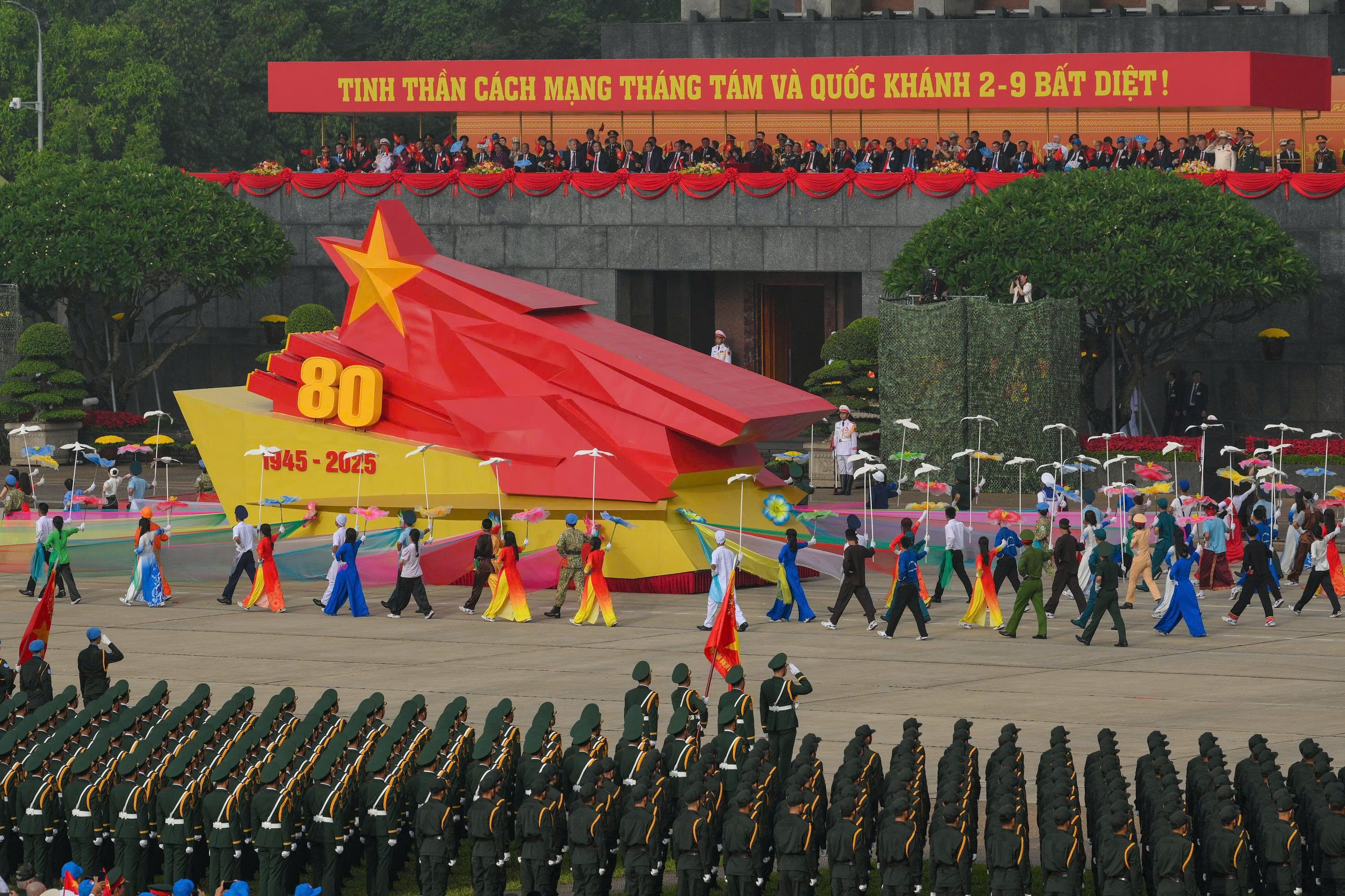 Qua chặng đường 80 năm đầy gian khó nhưng hào hùng, chúng ta đã khẳng định chân lý: dưới ngọn cờ vinh quang của Đảng, với ánh sáng Hồ Chí Minh soi đường, dựa vào sức mạnh nhân dân và khối đại đoàn kết toàn dân tộc, không có khó khăn, thử thách nào mà nhân dân ta không vượt qua; không có mục tiêu cao đẹp nào mà dân tộc ta không đạt tới.