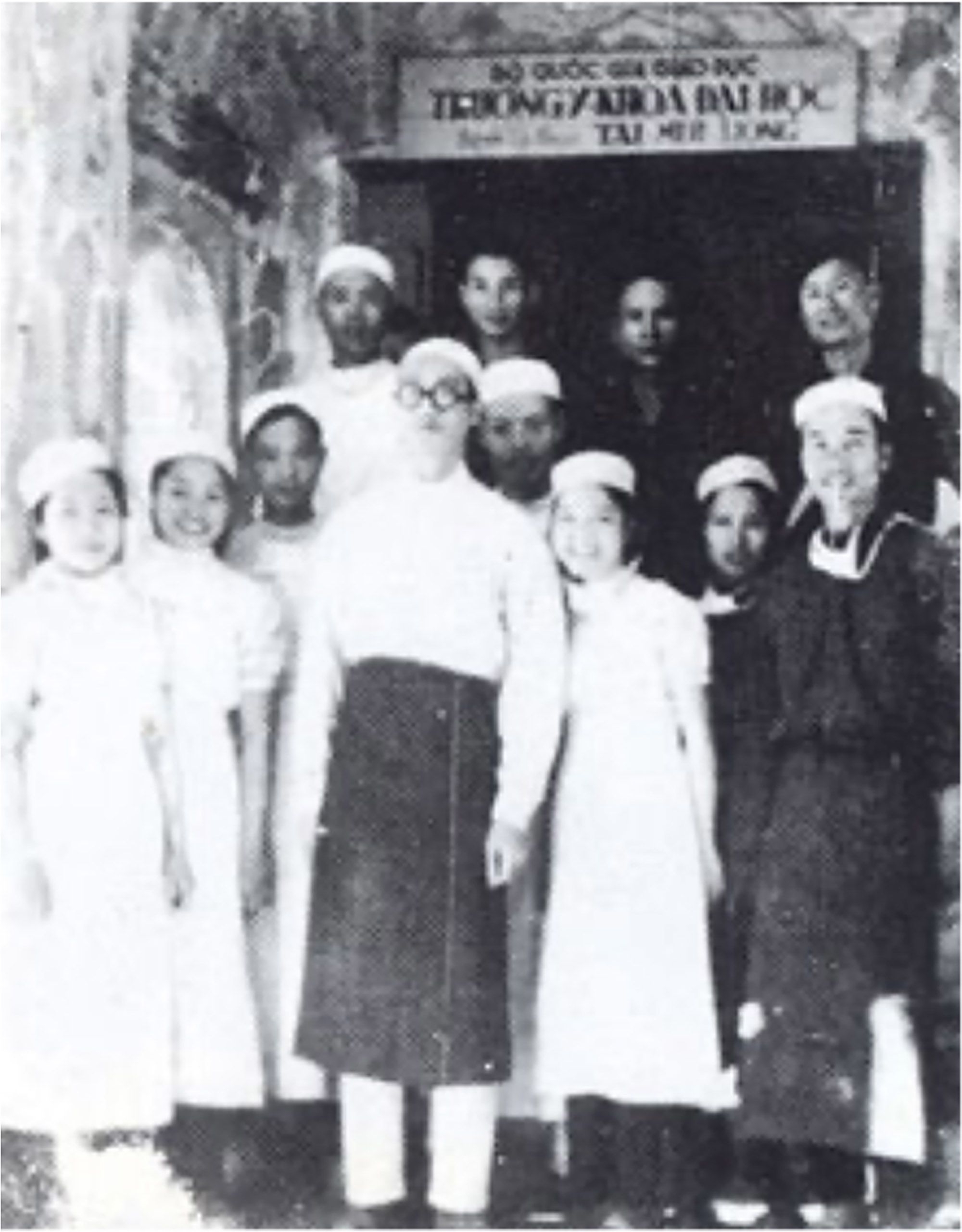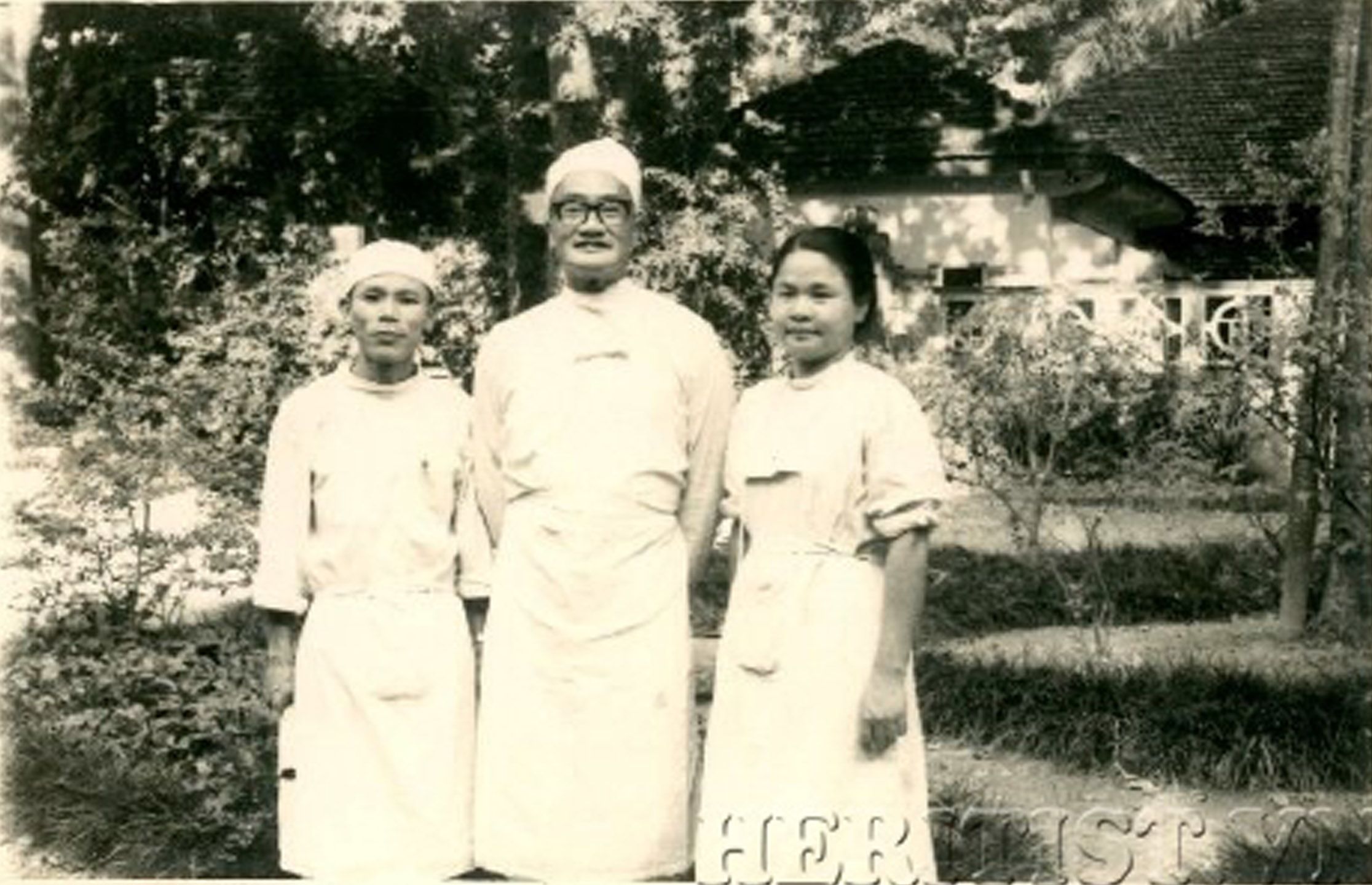 Giáo sư Trần Hữu Tước (giữa) cùng các học trò Trần Hữu Tuân, Đinh Thị Nguyệt nhân ngày thành lập Viện Tai Mũi Họng Trung ương, 1969. (Ảnh tư liệu)