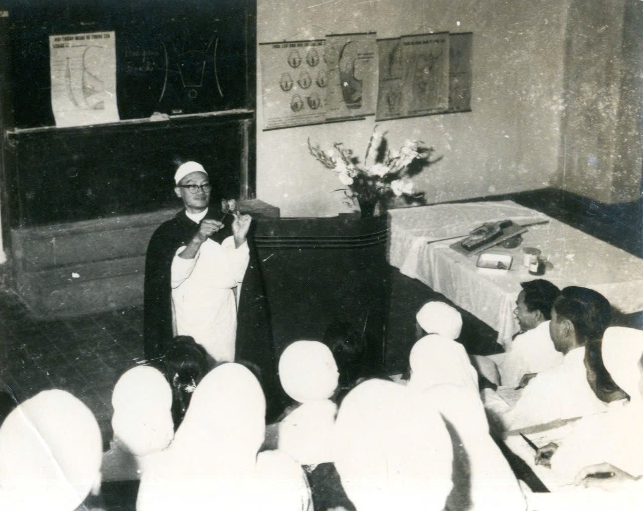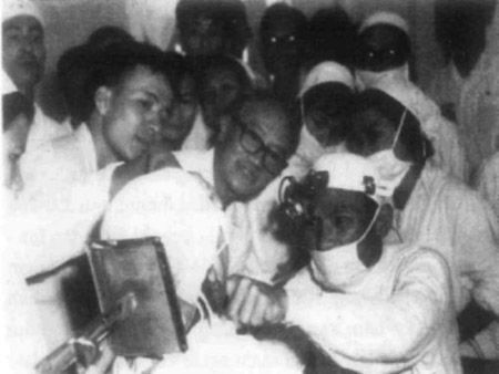 Giáo sư Trần Hữu Tước (người thứ hai từ trái sang) trong một ca hội chẩn với các bác sĩ và sinh viên nội trú (26/9/1974). (Ảnh tư liệu)