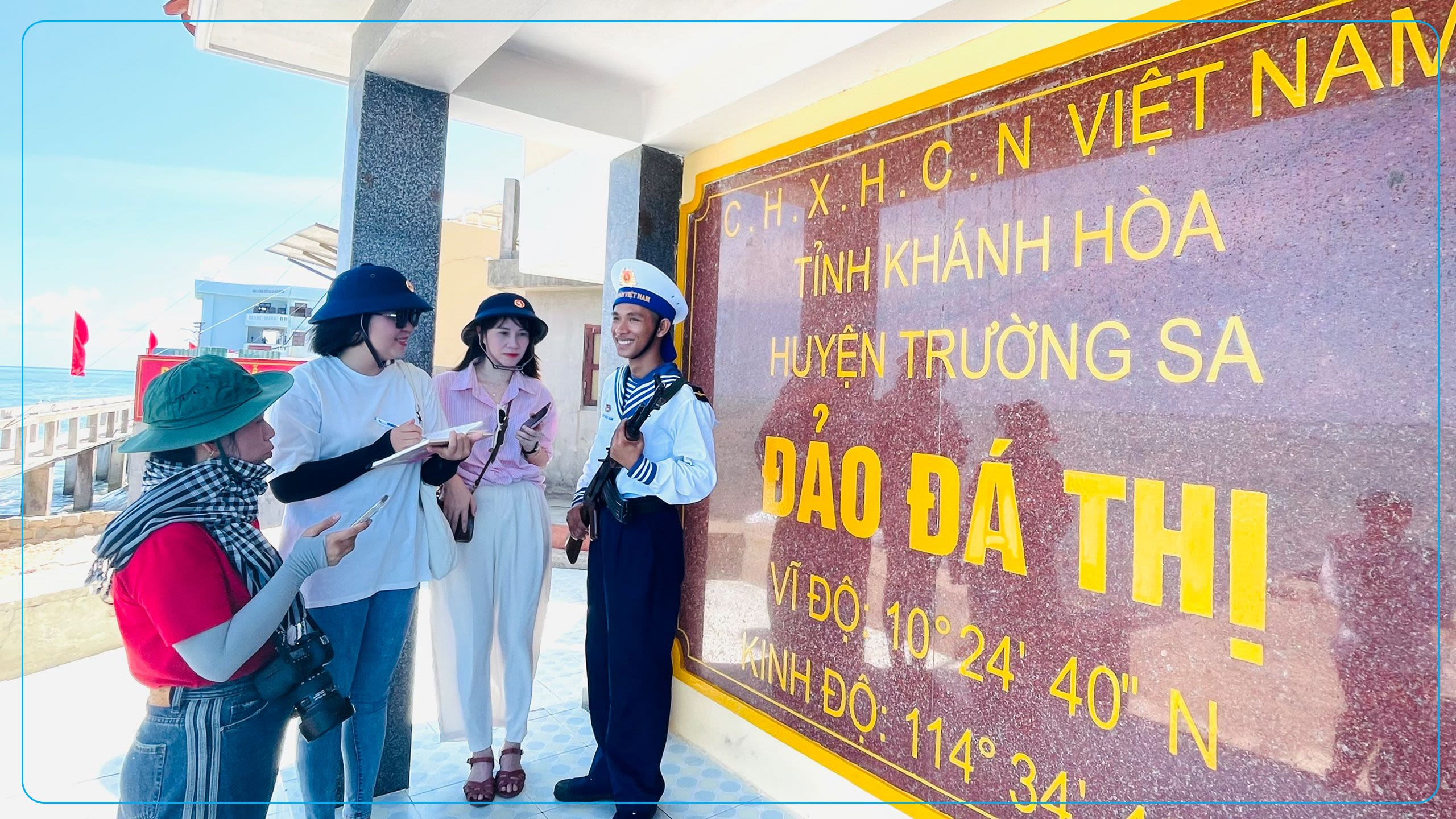 Đá Thị chiều nay ồn ào hơn thường lệ bởi những cái bắt tay thật chặt, những lời hỏi han không ngớt. Ngay trước bảng thông tin là chiến sĩ trẻ Nguyễn Văn Thành, sinh năm 2004, đang đứng gác giữa cái nắng cháy da thịt. Ra đảo được hơn 5 tháng mà làn da của Thành đã chuyển màu đen sạm “đặc trưng” của lính đảo.