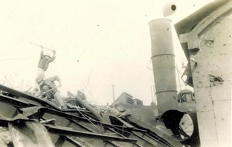 干部员工修复遭到美国飞机轰炸的安阜发电厂。(图片来源:EVN文化)