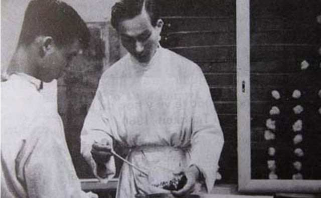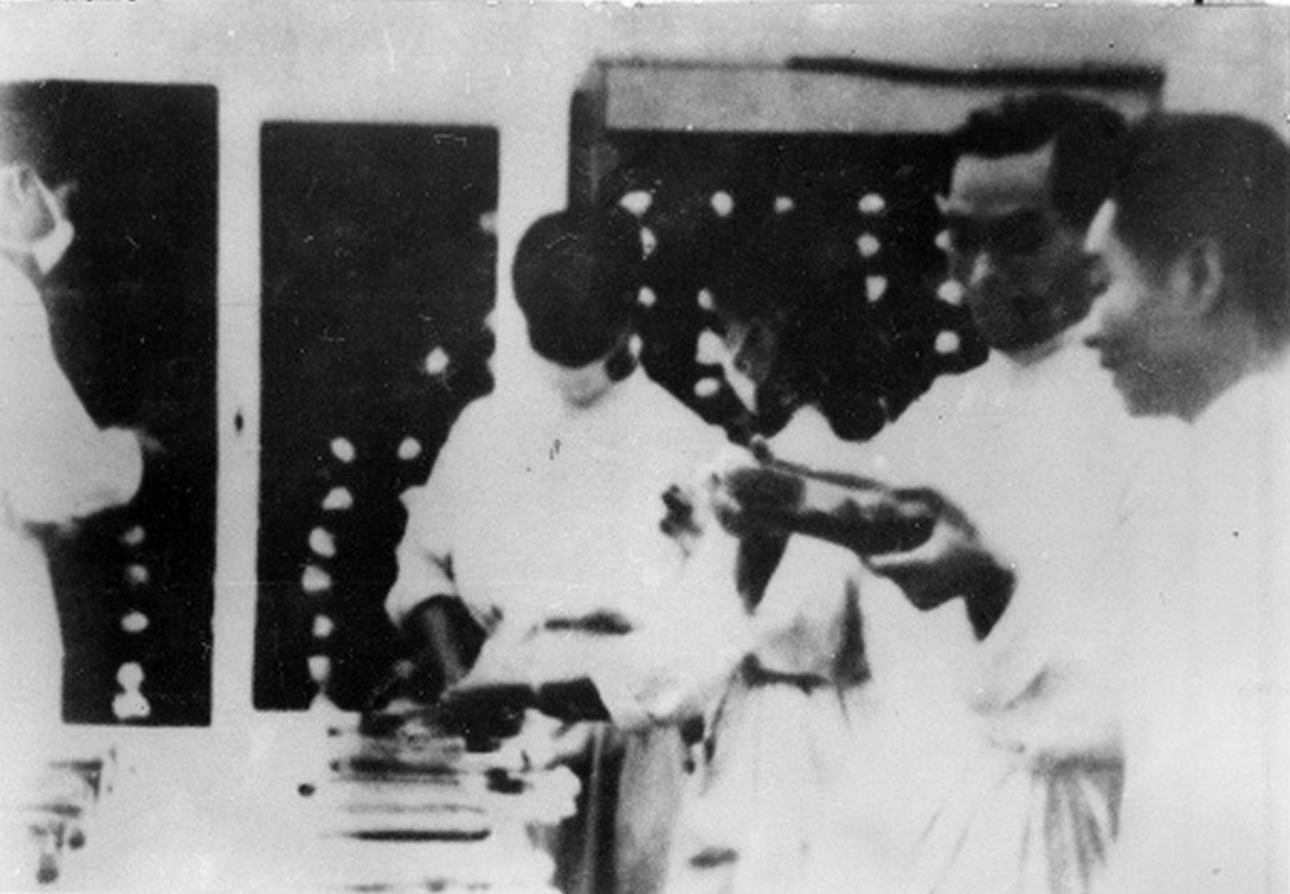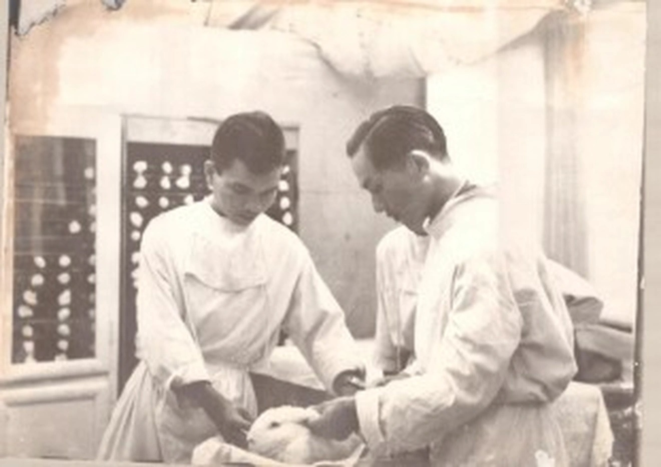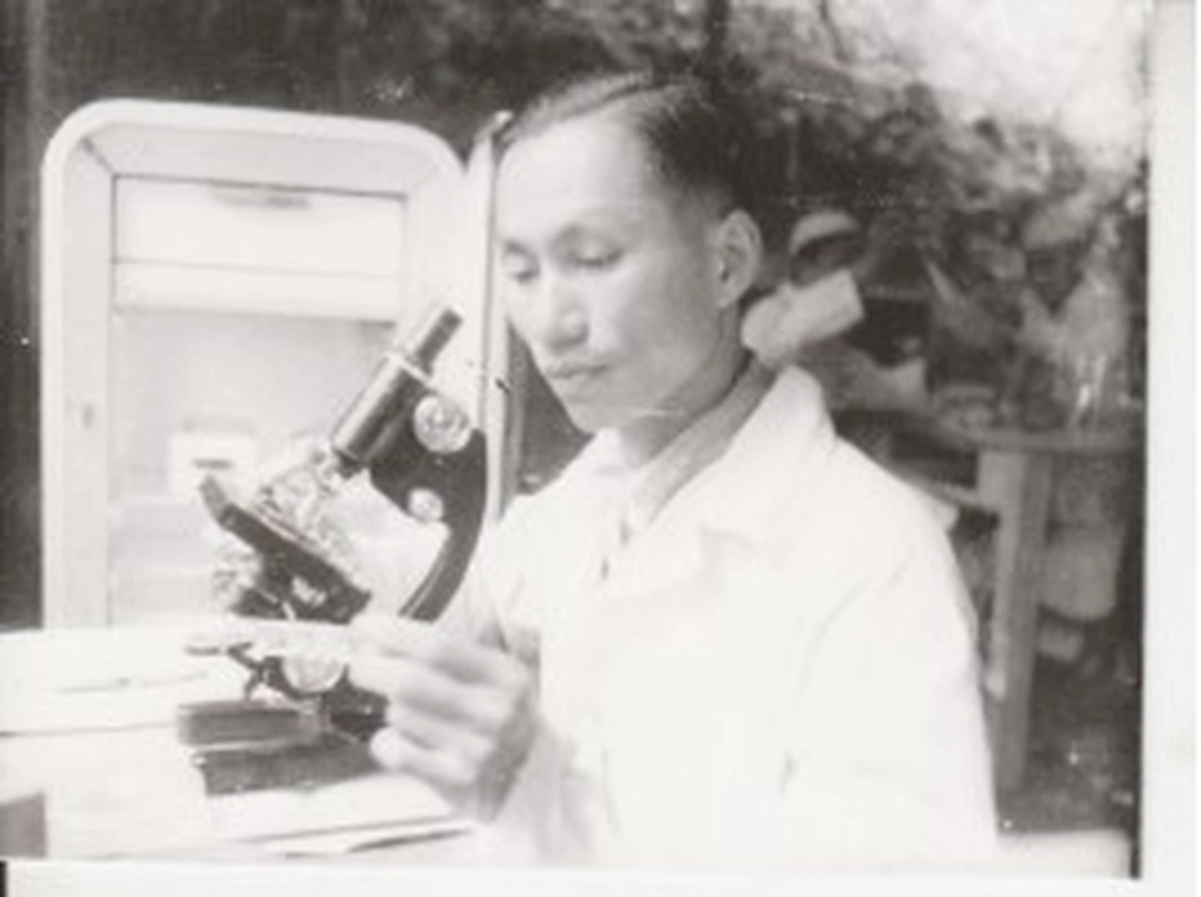 Bác sĩ Đặng Văn Ngữ đang kiểm tra "nước lọc penicillin" trong kháng chiến chống Pháp. (Ảnh tư liệu)