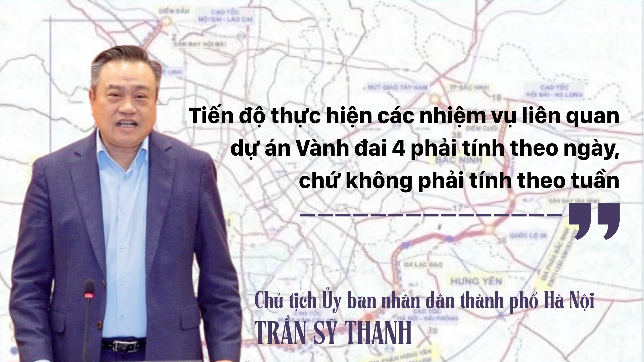 “Tiến độ thực hiện các nhiệm vụ liên quan dự án Vành đai 4 phải tính theo ngày, chứ không phải tính theo tuần”, Chủ tịch Ủy ban nhân dân thành phố Trần Sỹ Thanh yêu cầu.