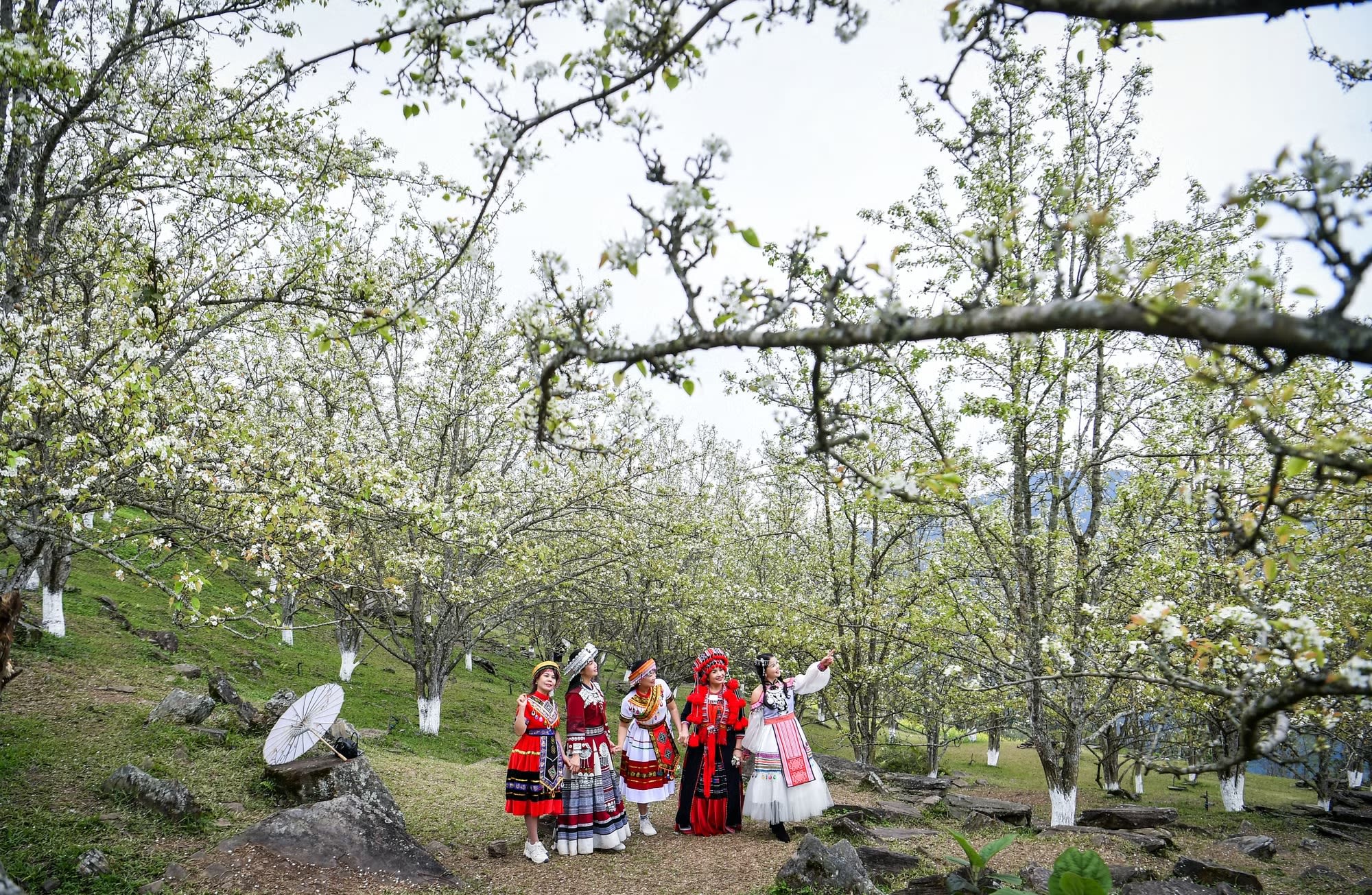 Nói đến Hồng Thái của tỉnh Tuyên Quang, nhiều người chắc hẳn sẽ nhớ ngay đến hình ảnh các chị em xúng xính trong trang phục truyền thống của người Dao Tiền, Dao đỏ, tạo dáng giữa sắc trắng của vườn lê cổ thụ mùa hoa nở.