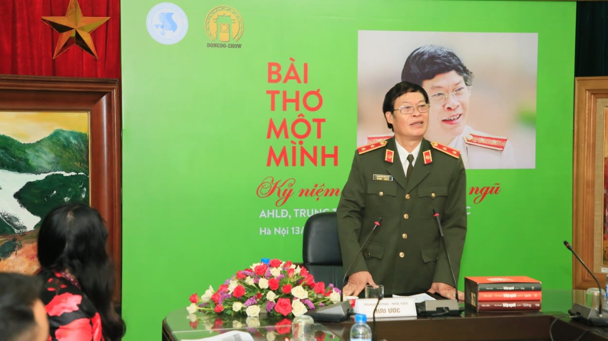 Trung tướng, nhà thơ Hữu Ước chia sẻ về đêm thơ nhạc họa "Hữu Ước và bài thơ Một mình" sẽ diễn ra tại Nhà hát Âu Cơ. (Ảnh: Tuổi trẻ thủ đô)