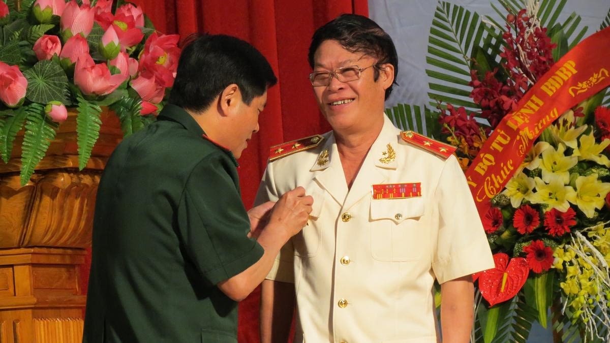 Trung tướng Hữu Ước được gắn kỷ niệm chương của báo Biên phòng, trong lễ đón nhận Huân chương Bảo vệ tổ quốc hạng Nhì và kỷ niệm 56 năm Ngày Truyền thống của báo (22/4/1959 - 22/4/2015). Ảnh: wikipedia