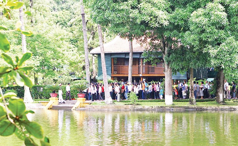 Người dân thăm nhà sàn trong Phủ Chủ tịch, nơi Bác Hồ từng sống và làm việc. (Ảnh: AN THÀNH ĐẠT)
