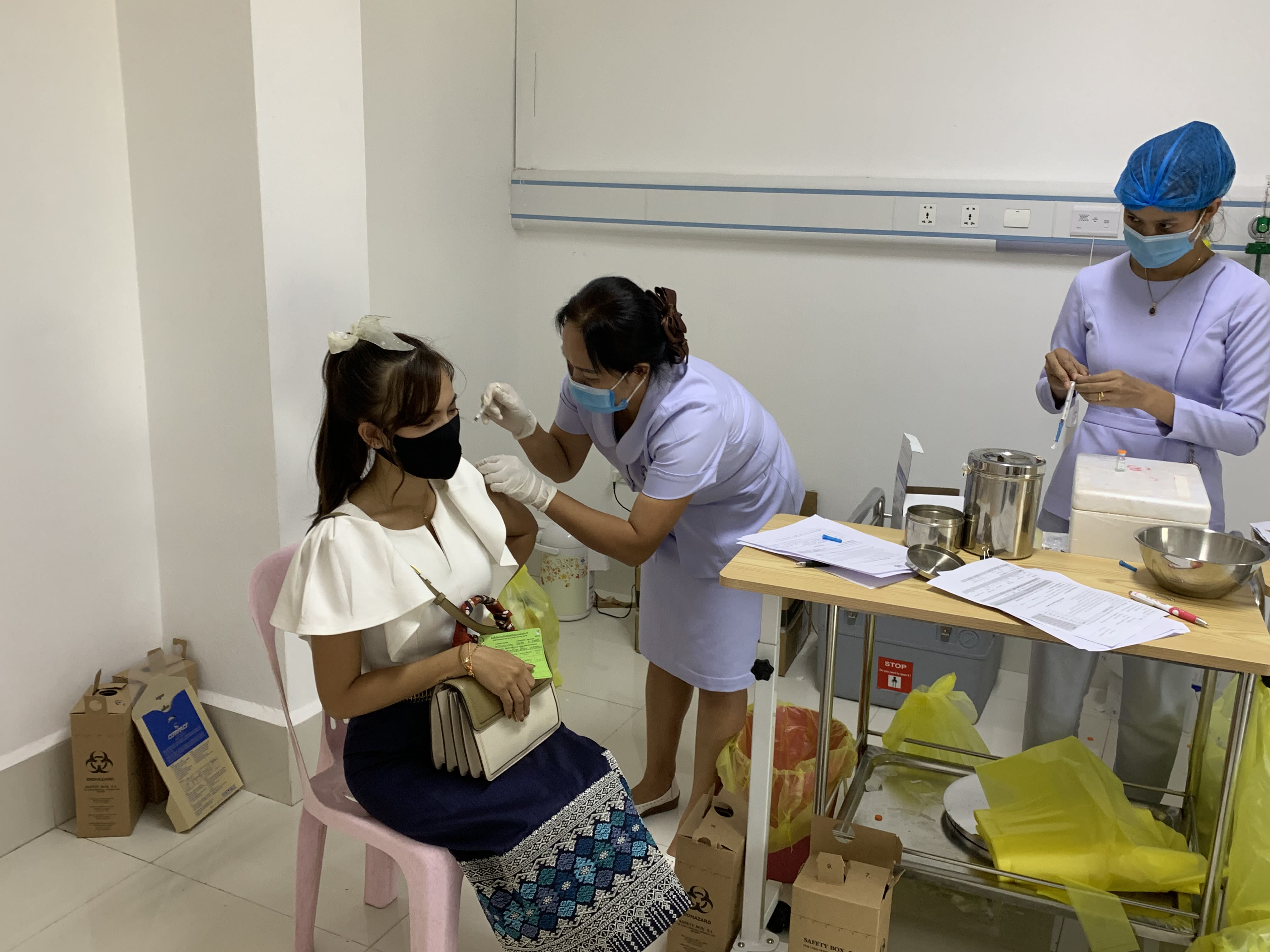 Lào thực hiện chính sách tiêm vaccine ngừa Covid-19 miễn phí cho người dân. (Ảnh: Xuân Sơn)