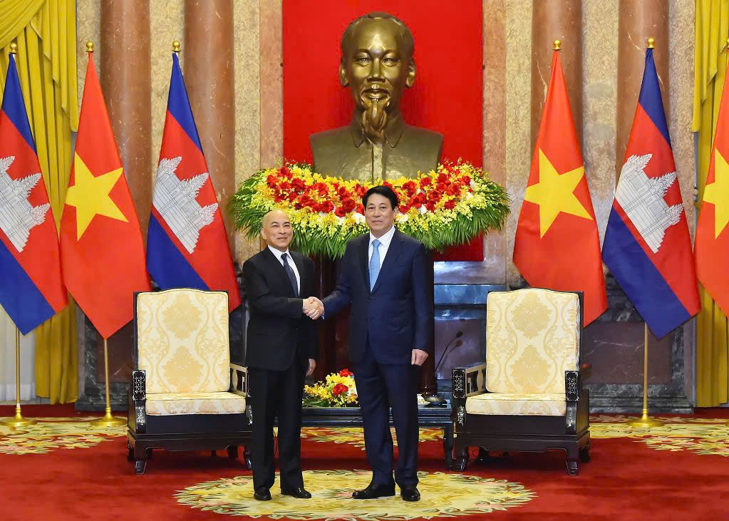 2024年11月28日,越南国家主席梁强会见柬埔寨国王诺罗敦·西哈莫尼。