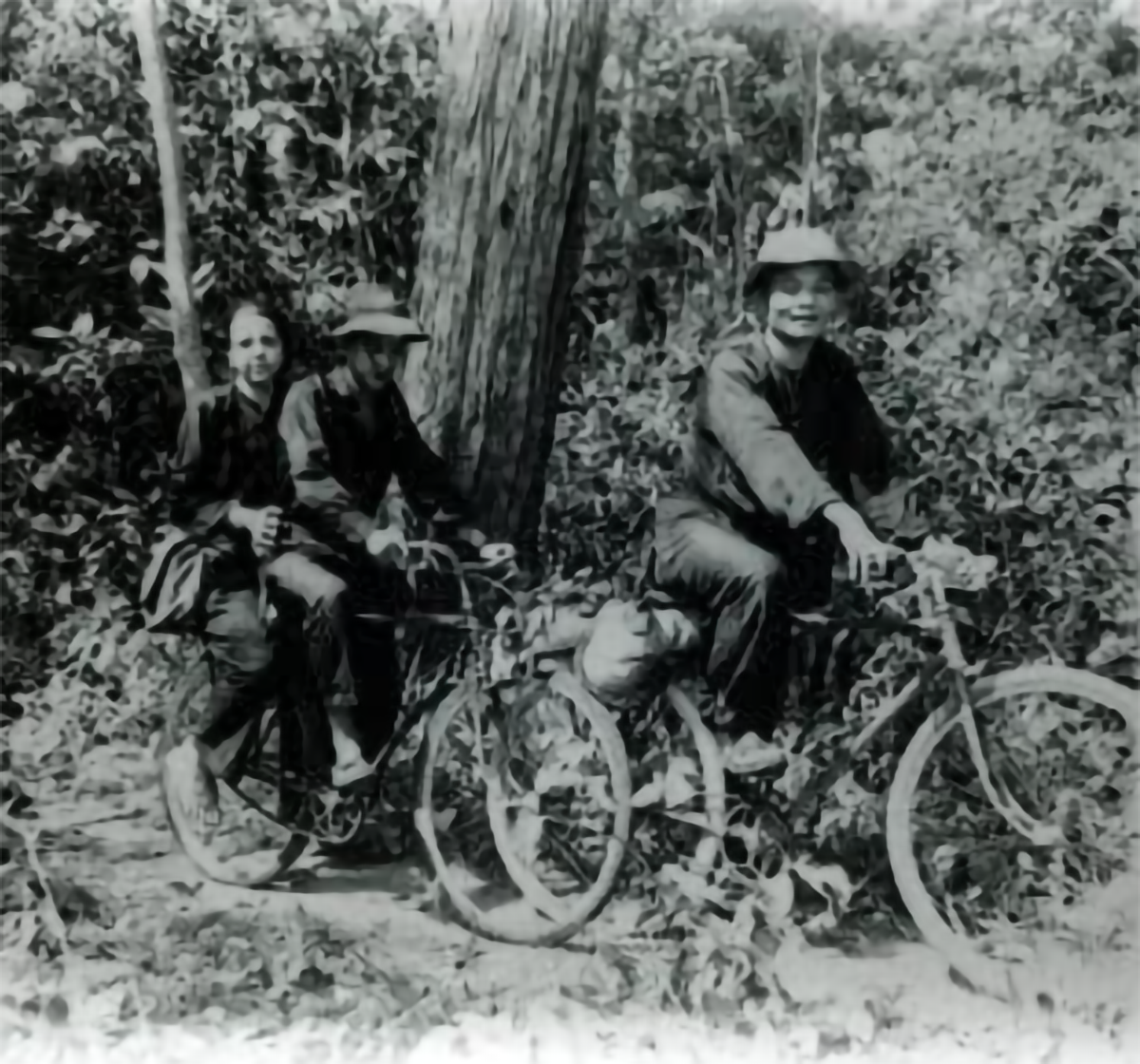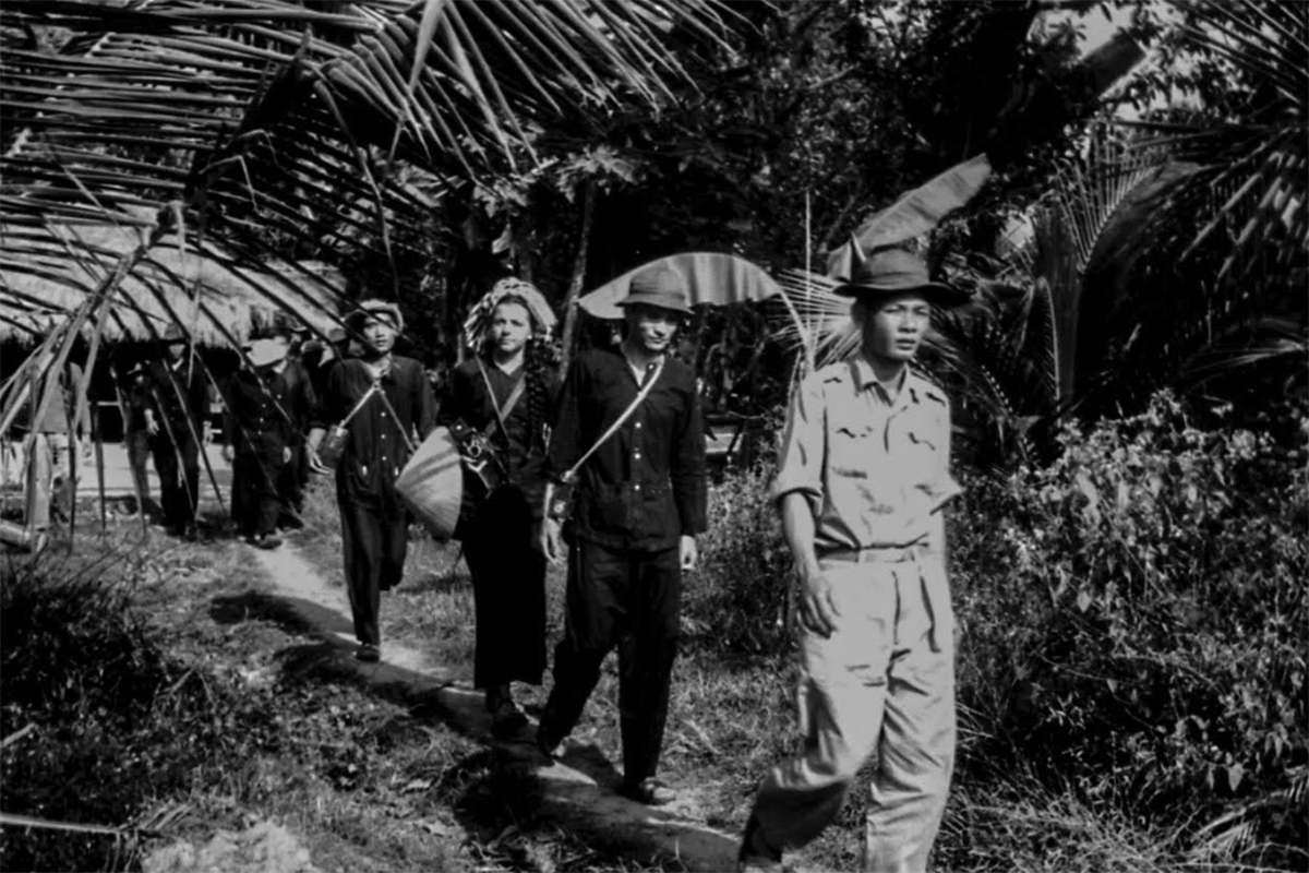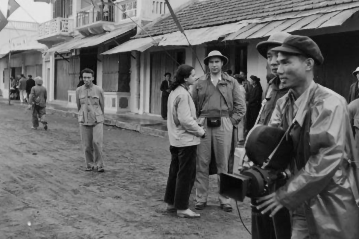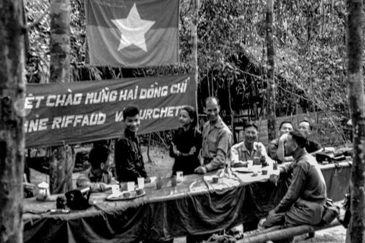Hai nhà báo Madeleine Riffaud và Wilfred Burchett gặp Giải phóng quân. (Ảnh tư liệu)