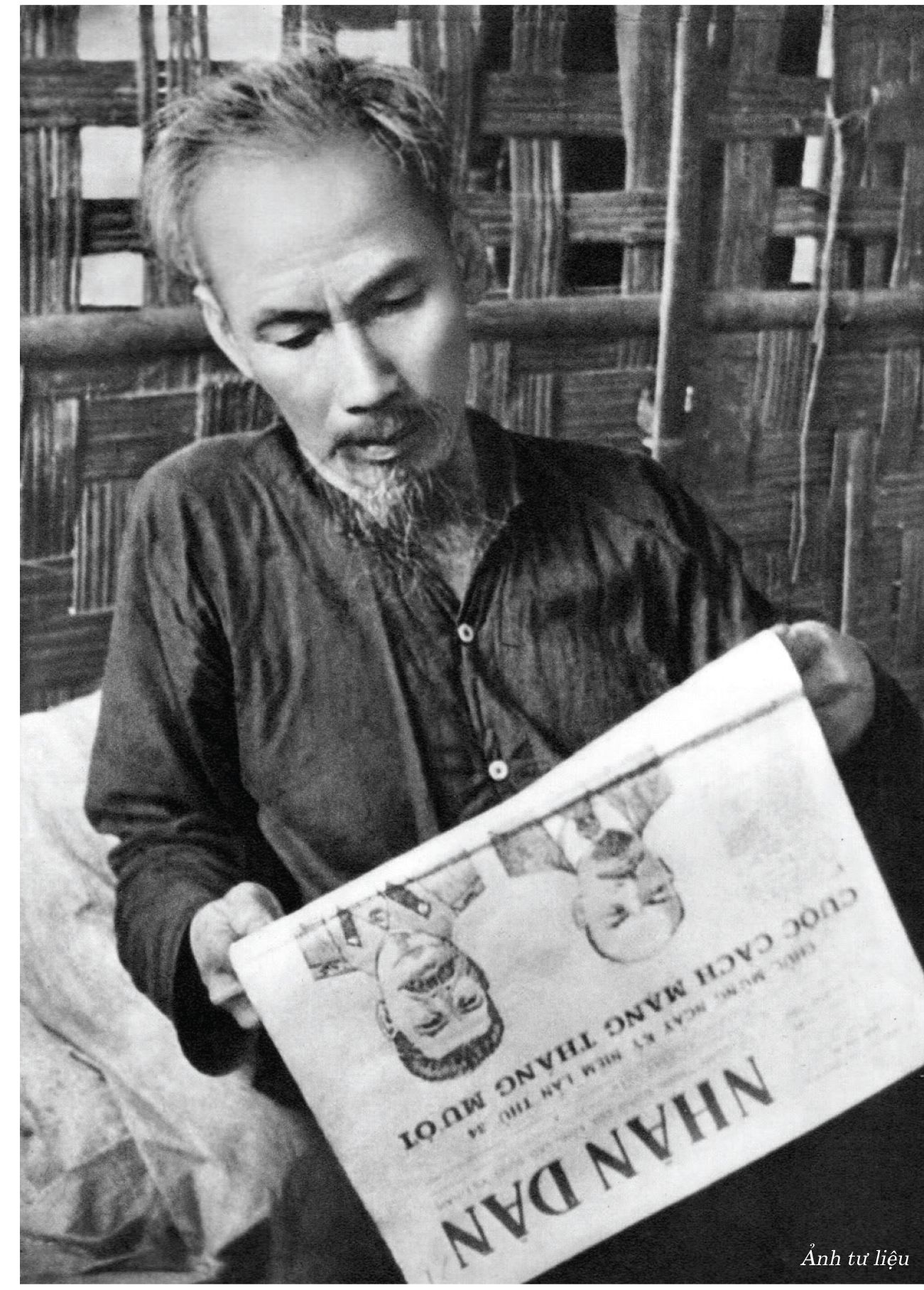 Bác Hồ đọc Báo Nhân Dân ở chiến khu Việt Bắc, năm 1951. Ảnh: TTXVN